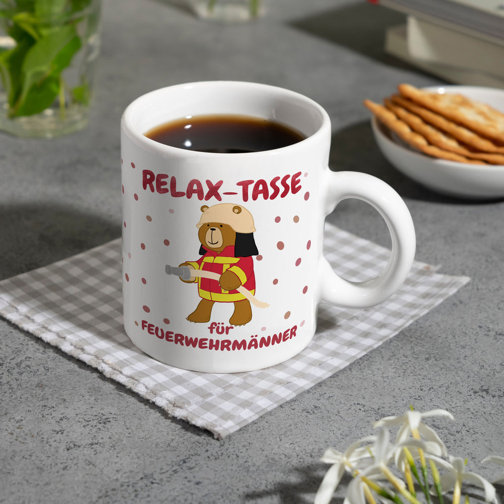 - Der Beruf Feuerwehrmann ist cool und wichtig, aber auch durchaus anstrengend. Diese Relax-Tasse schafft eine ruhige Kaffeepause oder Teezeit für zwischendurch.
