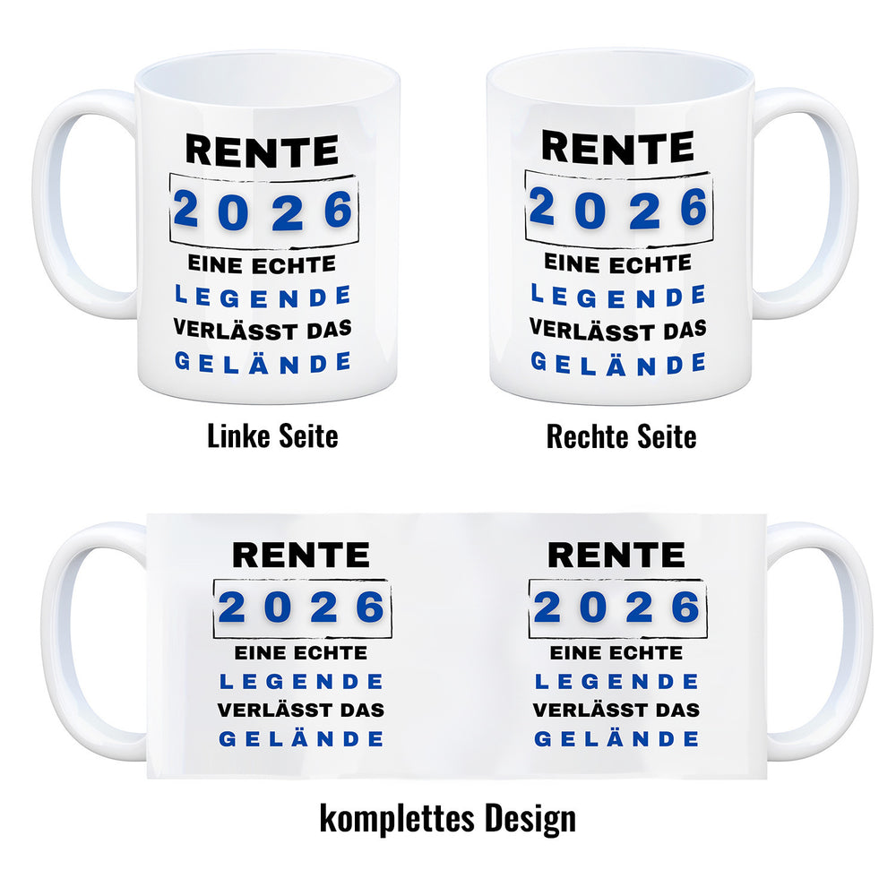 • 1x Rente 2026 Kaffeebecher mit Spruch Rente 2026 Legende geht in der gewählten Ausführung