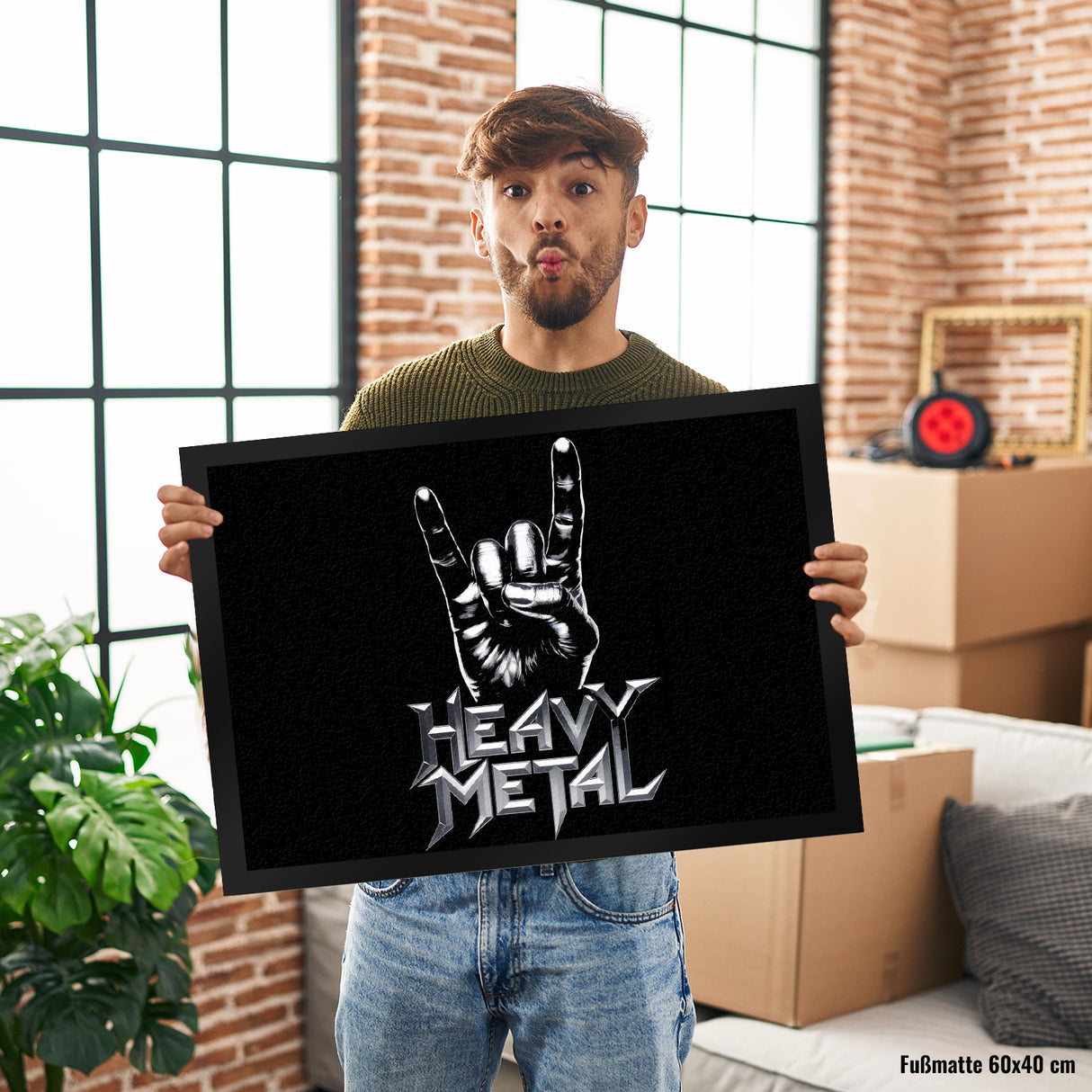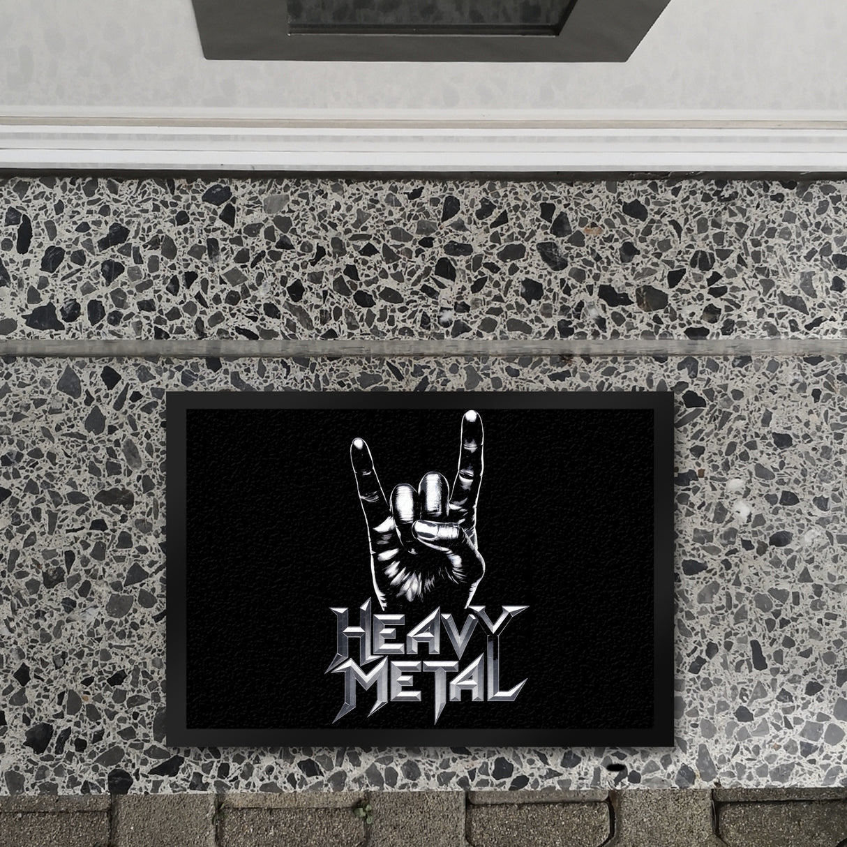 - Diese Heavy Metal Fußmatte ist der perfekte Empfang für alle Metal-Fans! Mit dem Rockzeichen-Handmotiv in glänzendem Silber auf einem schwarzen Hintergrund sagt sie jedem Besucher: "Rock On!" und zeigt, dass hier echte Rocker zu Hause sind. Die Devil Horns Hand bringt das ultimative Flair in deinen Eingang!