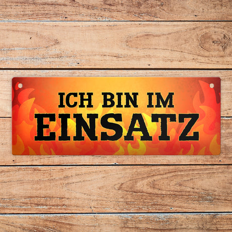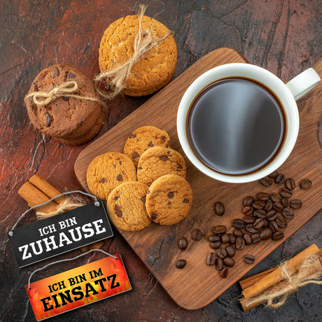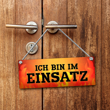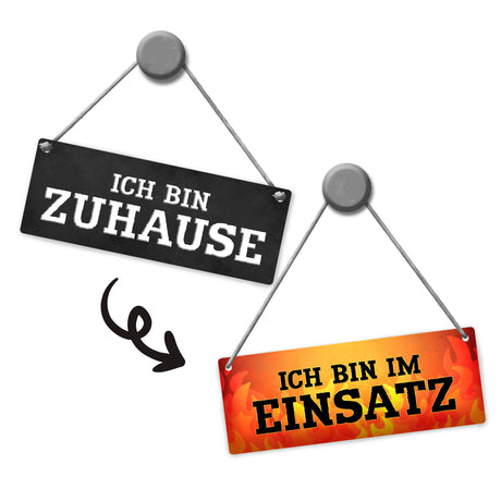 Feuerwehrmann ist im Einsatz oder Zuhause Wendeschild mit Kordel