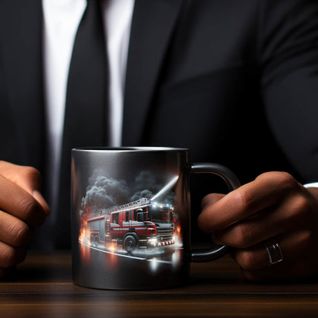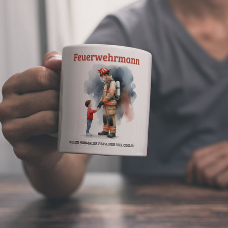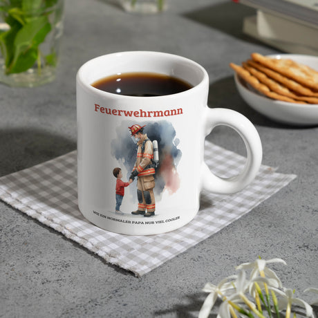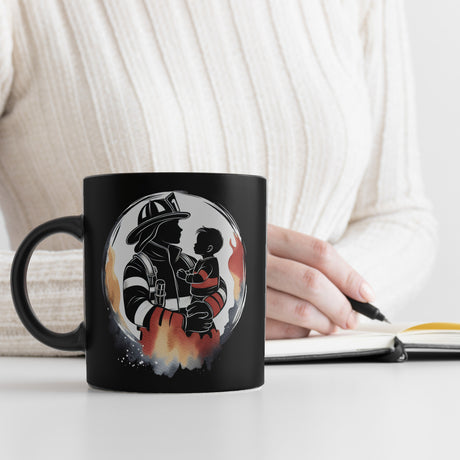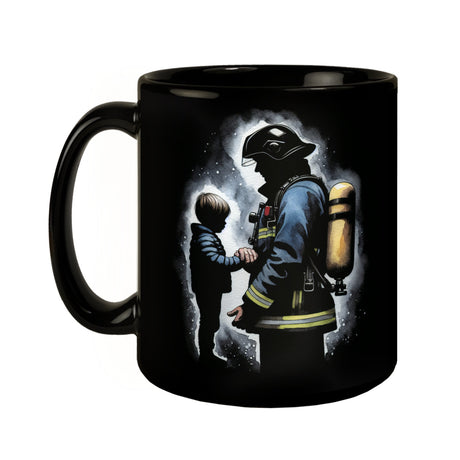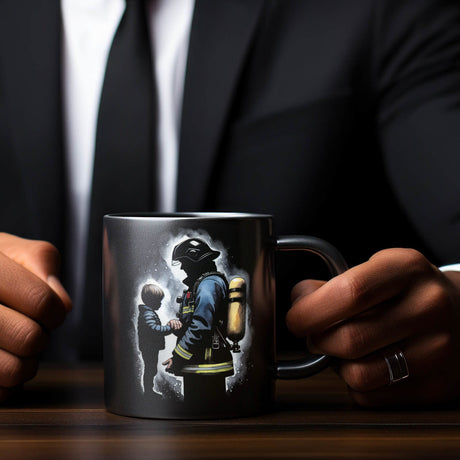 Ab €12,95Grundpreis /Nicht verfügbarAuf LagerFeuerwehrmann hält die Hand seines Kindes Tasse in Schwarz