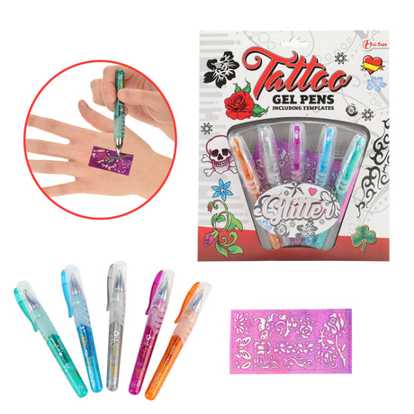 Tattoo Gelstifte im 5er Set mit einem Bogen Schablonen