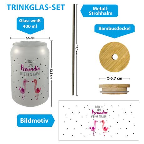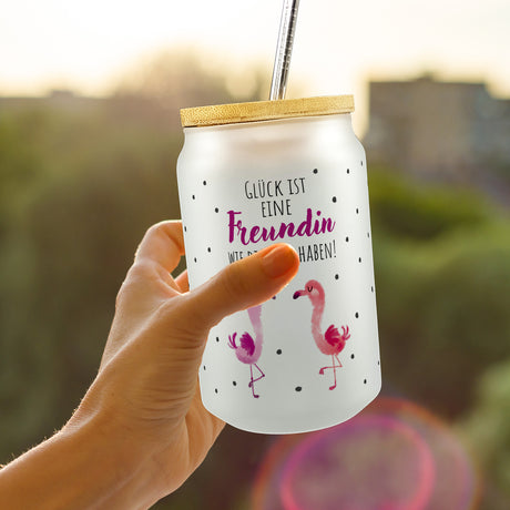 - Flamingo Trinkglas mit Bambusdeckel mit Spruch Glück ist eine Freundin wie dich zu haben €14,95Grundpreis /Nicht verfügbarAuf Lager