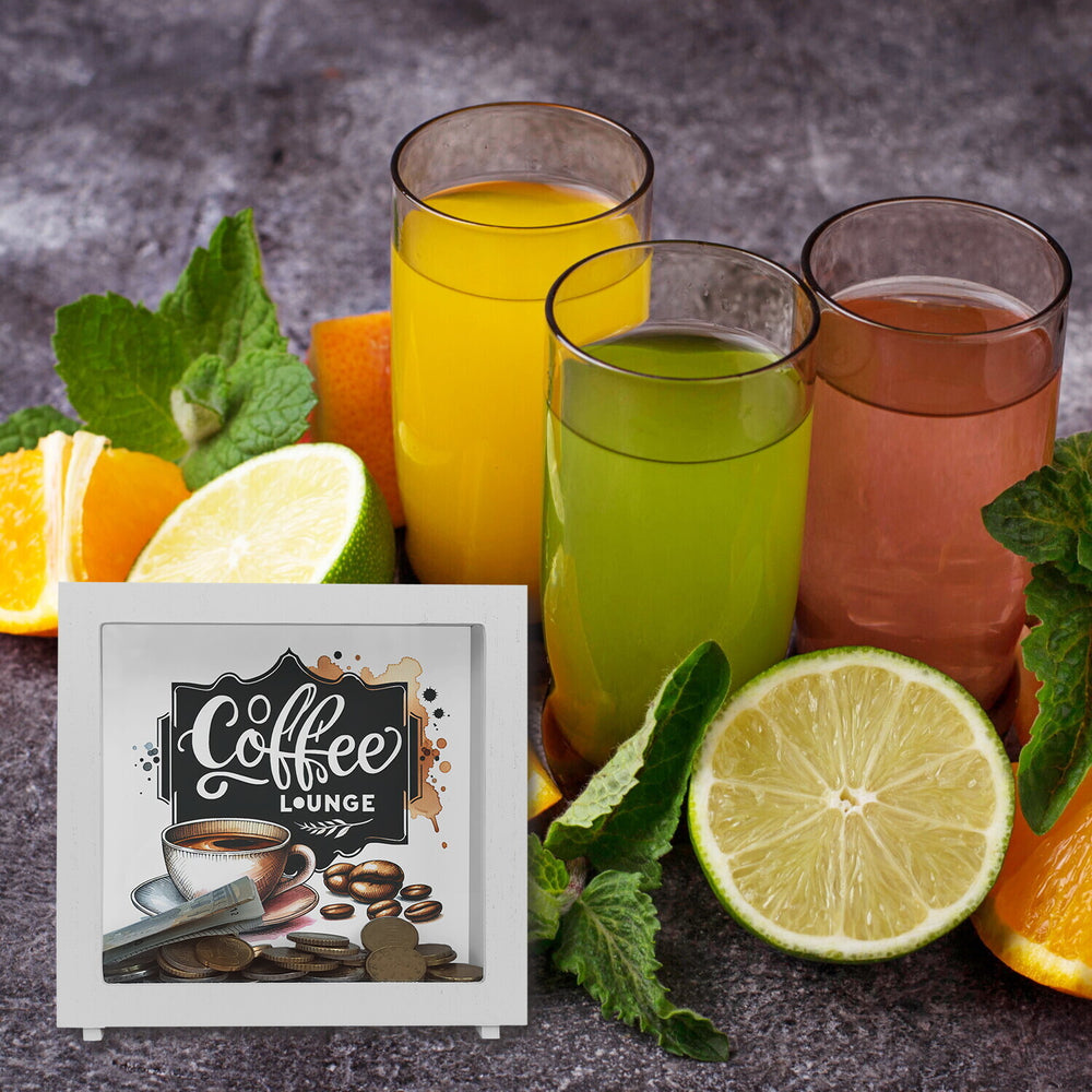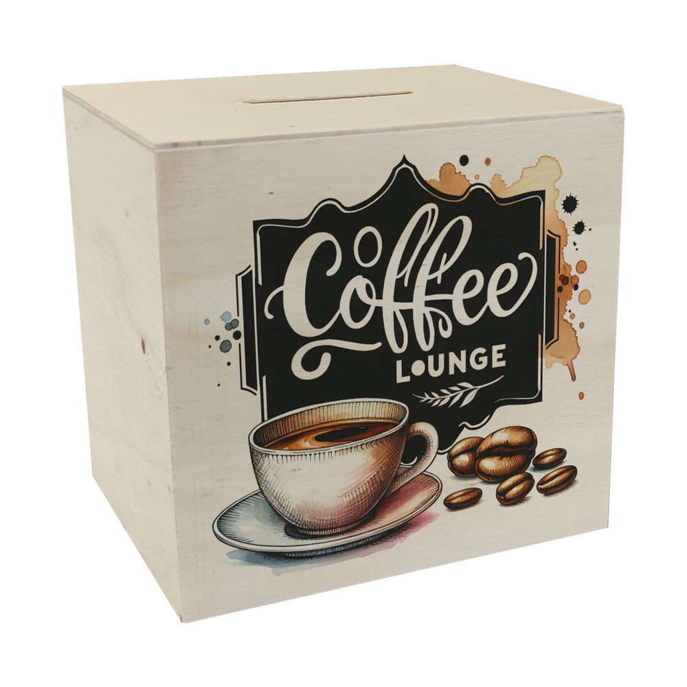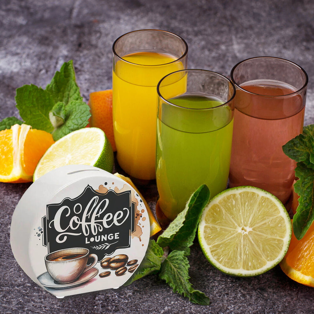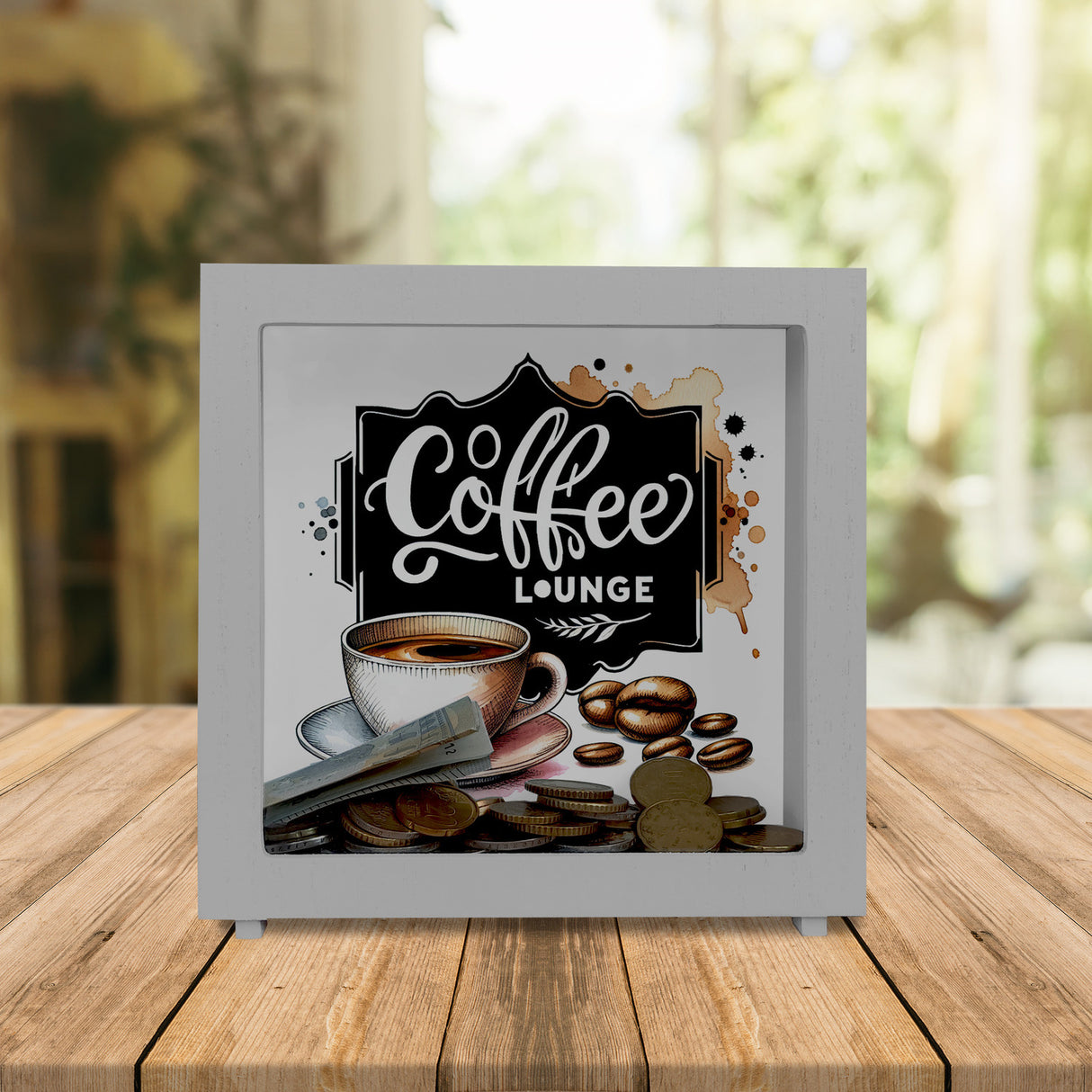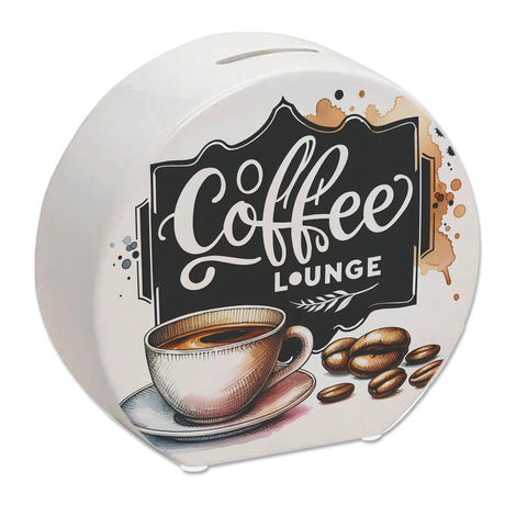 - Willkommen in der Coffee Lounge! Diese Spardose ist perfekt für echte Kaffee-Liebhaber. Mit einer großen Tafel und einer dampfenden Tasse Kaffeegenuss, zeigt sie die wahre Liebe zum Kaffee.
