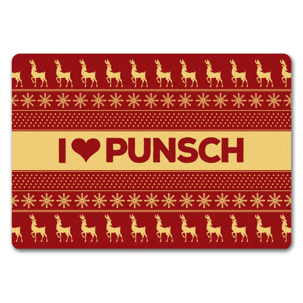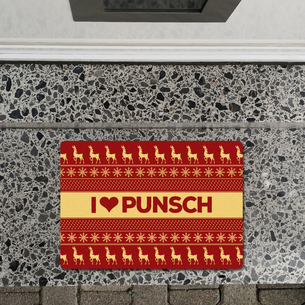 I love Punsch Fußmatte ohne Rand in rot mit Weihnachtsmuster Motiv