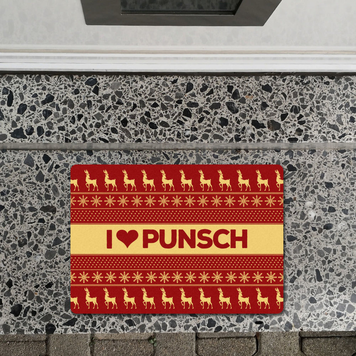 - Lieferumfang: 1x I love Punsch Fußmatte ohne Rand in rot mit Weihnachtsmuster Motiv