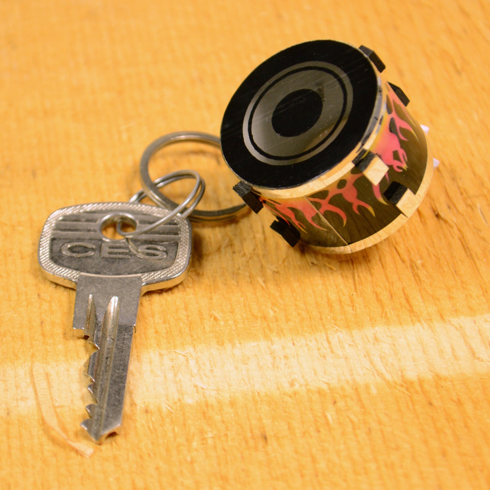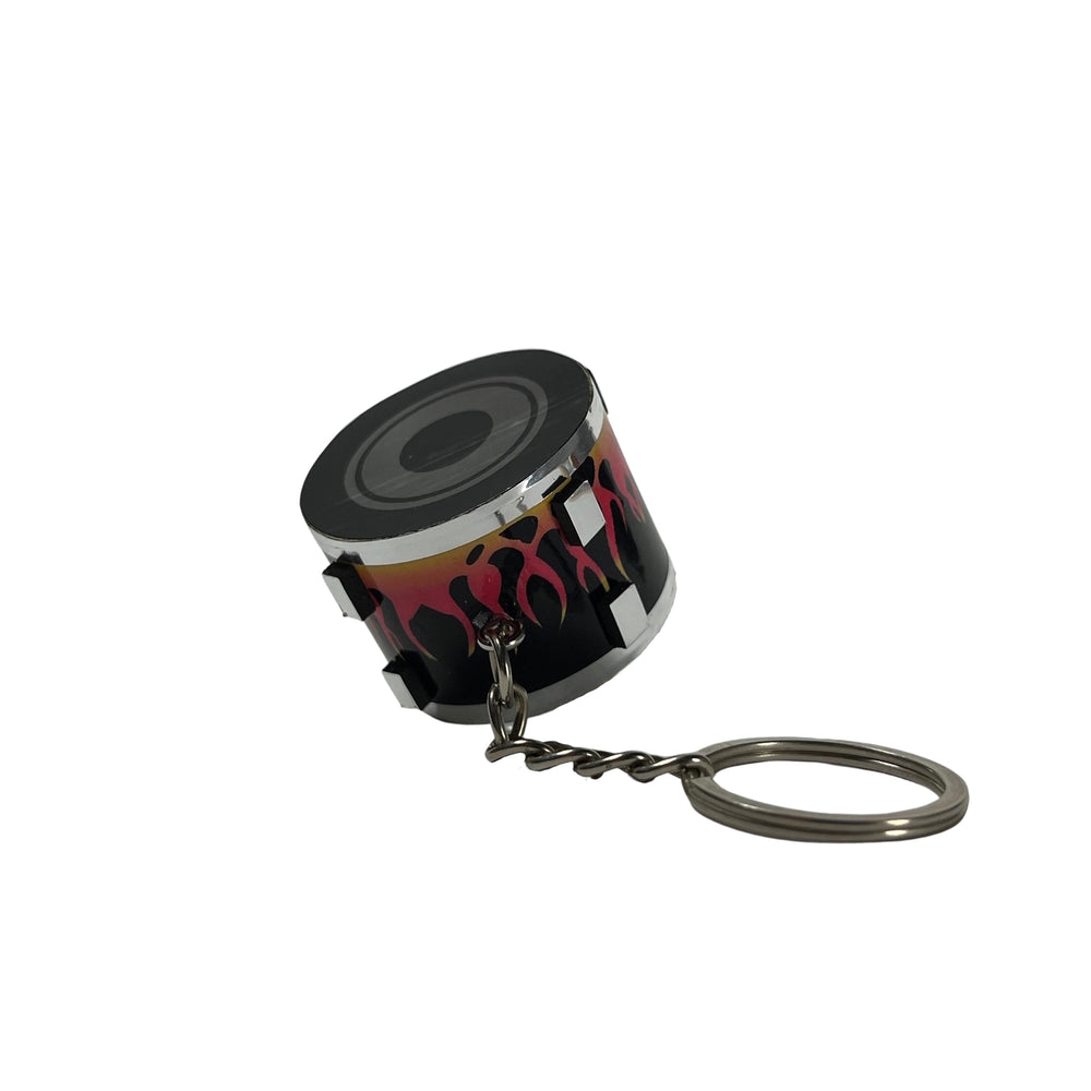 Snare Drum Schlüsselanhänger mit Flammen Motiv