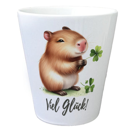 Capybara mit Kleeblatt Blumentopf mit Spruch Viel Glück