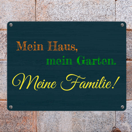 Ab €15,49Grundpreis /Nicht verfügbar Mein Haus, mein Garten. Meine Familie Metallschild in 15x20 cm mit Spruch