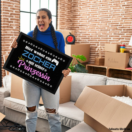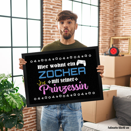 €9,95Grundpreis /Nicht verfügbar Hier wohnt ein Zocker mit seiner Prinzessin Fußmatte