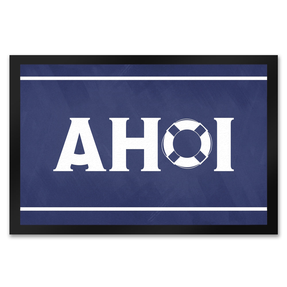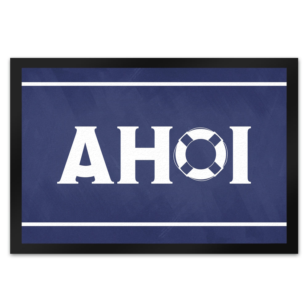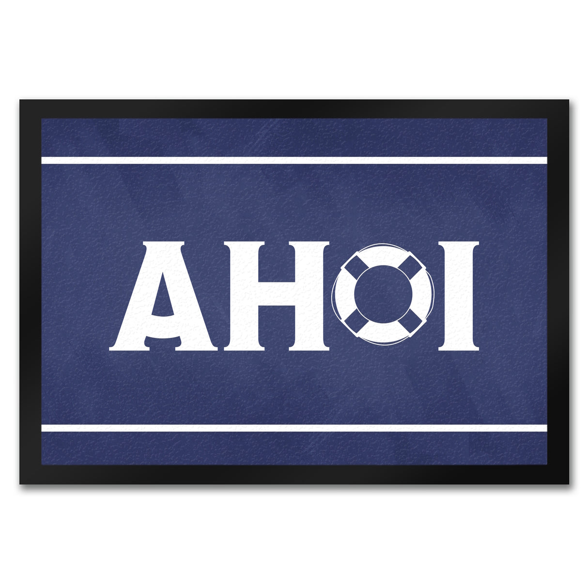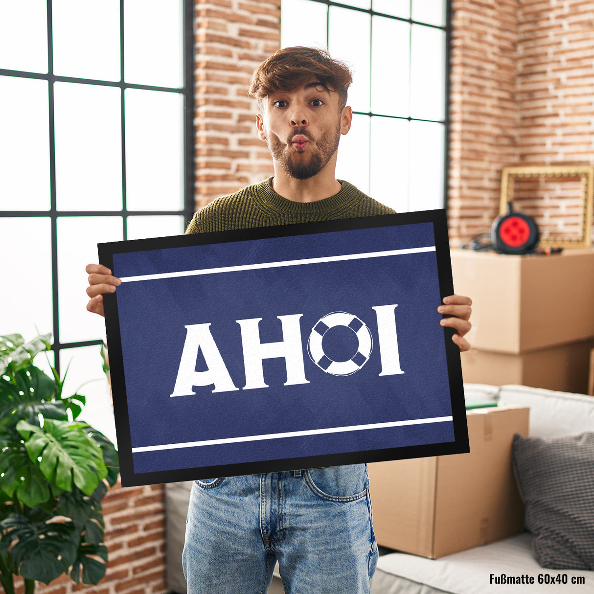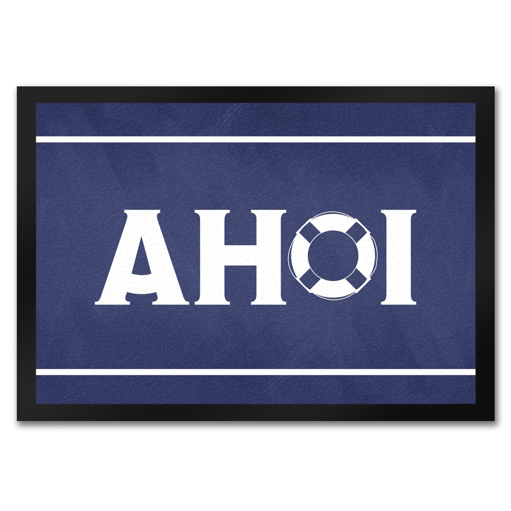 - 1x Ahoi Fußmatte mit Rettungsring Motiv als Geschenk für Seemänner in der gewählten Größe