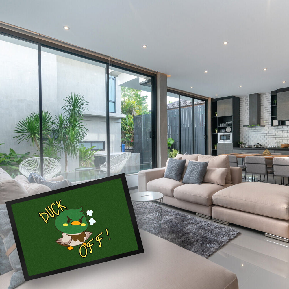- Ein toller Artikel, um Gäste mit einem "herzlichen Willkommen" an der Haustüre zu begrüßen und die Treppenhäuser oder Räume sauber zu halten. Die Fußmatte hat den witzigen Spruch DUCK OFF! drauf und ist auch als Geschenk für alle Entenfreunde geeignet, vor allem im Zuge eines Ein- oder Umzugs in eine neue Wohnung.