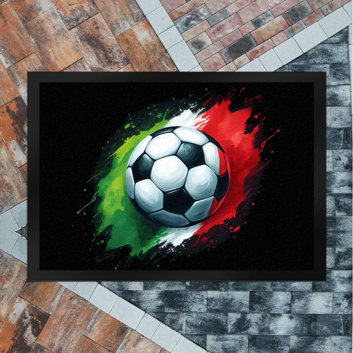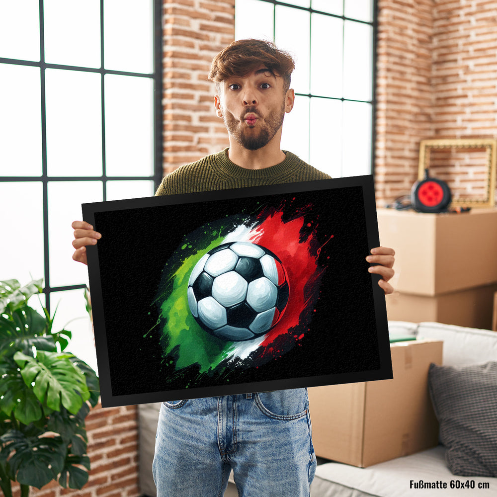 - Diese schicke Fußmatte mit der Fußball Italien Flagge bringt EM 2024-Stimmung direkt vor die Tür! Ein bunter Ball in den Farben Grün, Weiß und Rot wartet nur darauf, begrüßt zu werden. Perfekt für alle Fußball-Fans und Heimdekorations-Liebhaber!
