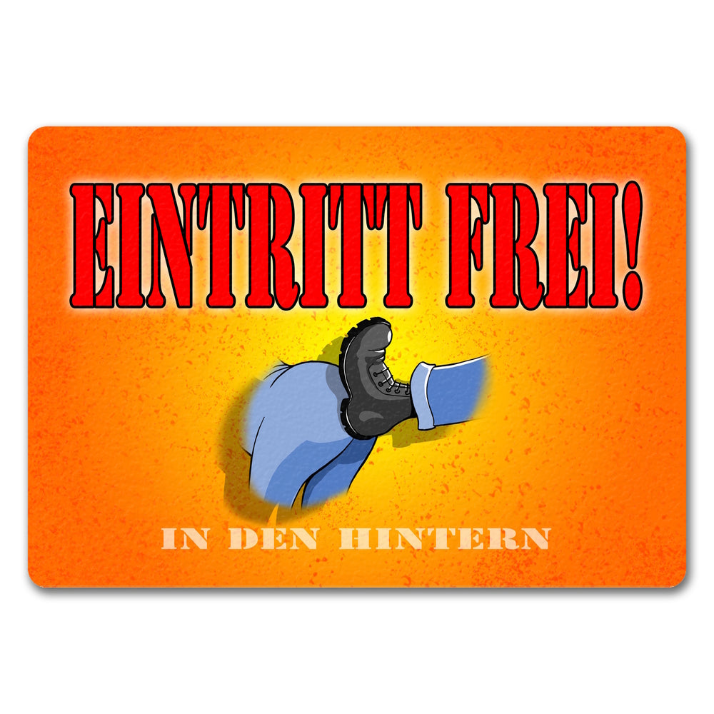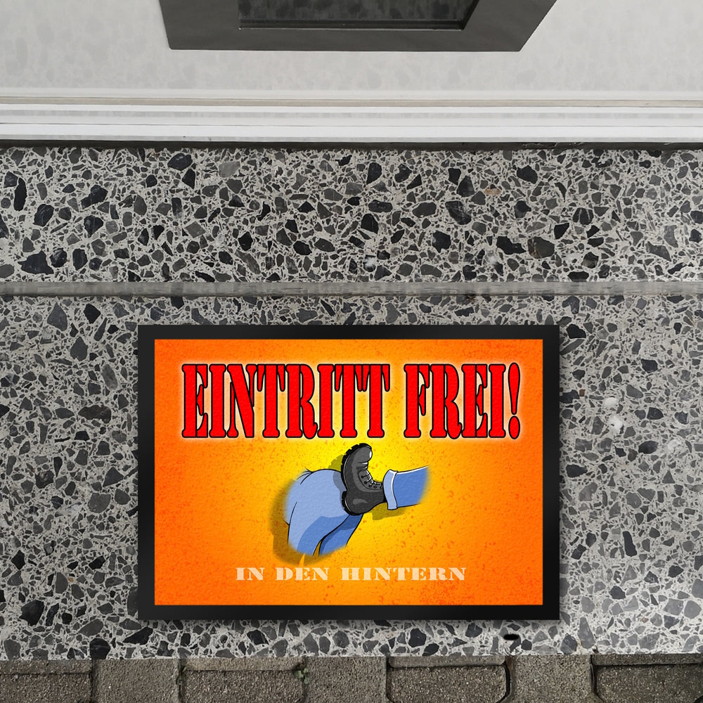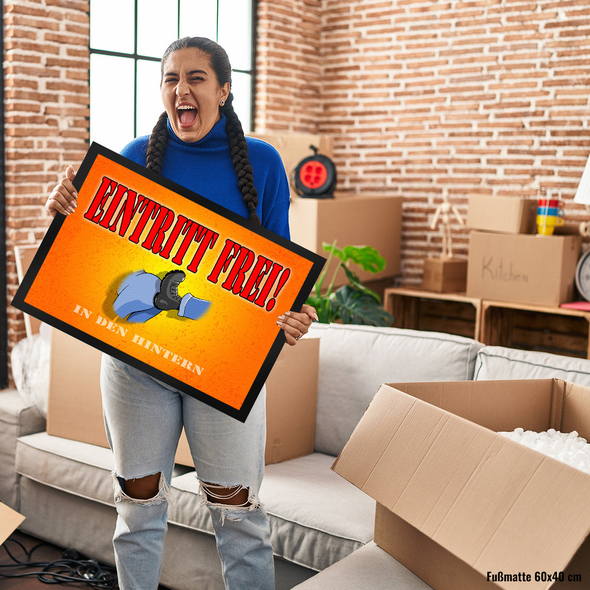 Fußmatte Eintritt frei - in den Hintern mit lustigem Comic-Arschtritt Symbol