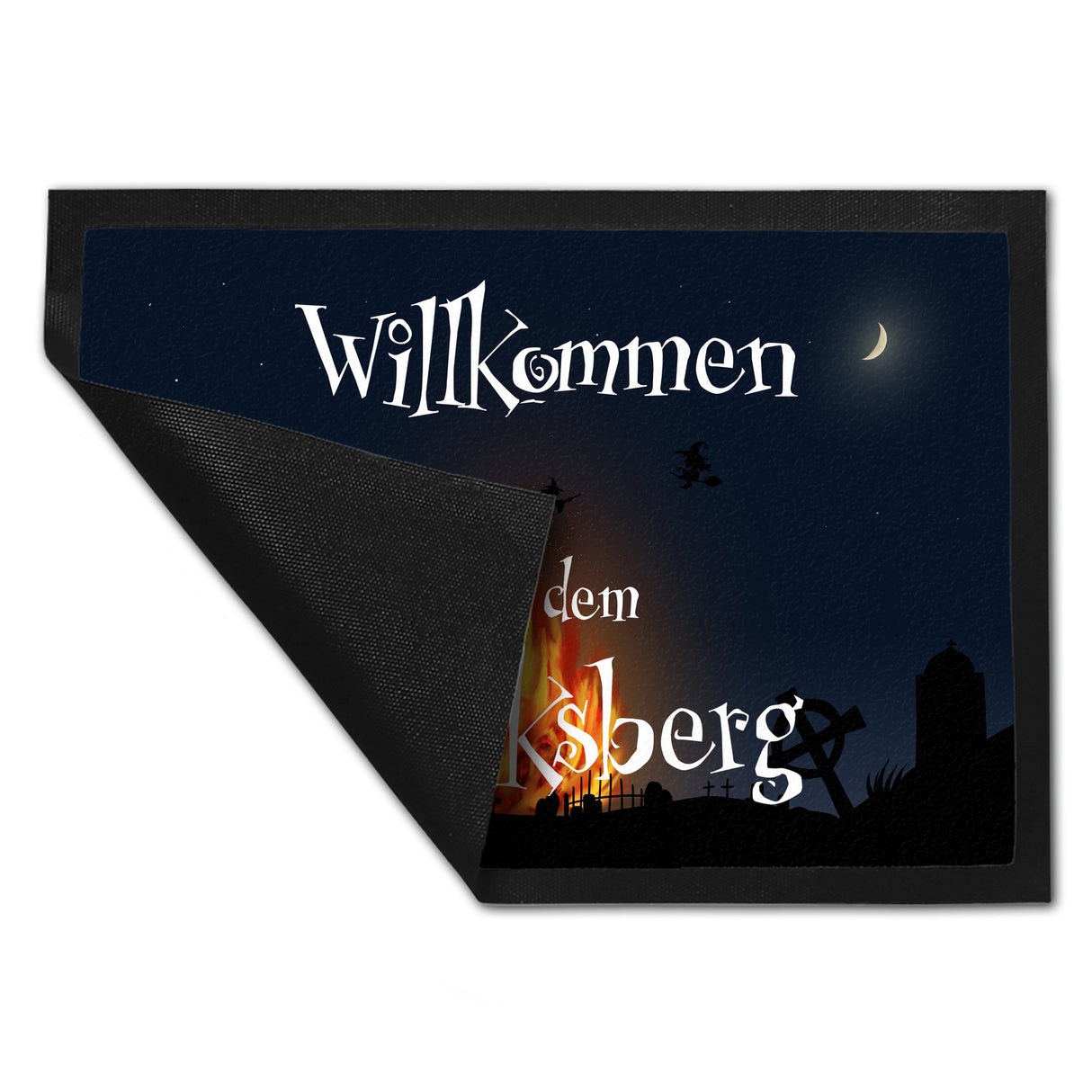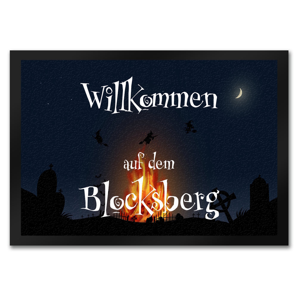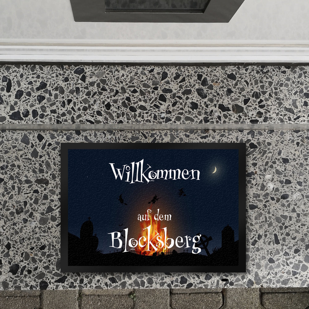 - 1x Fußmatte für Halloween mit Hexenfeuer und Spruch - Willkommen auf dem Blocksberg in der gewählten Größe