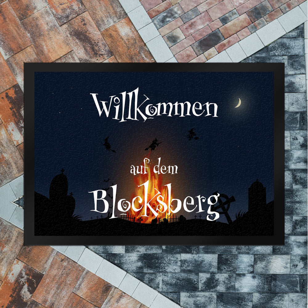 Fußmatte für Halloween mit Hexenfeuer und Spruch - Willkommen auf dem Blocksberg - 50x35 cm ist auf Lager und wird versandt, sobald es wieder verfügbar ist