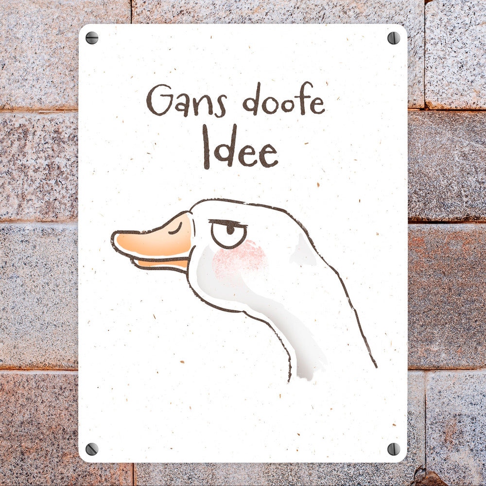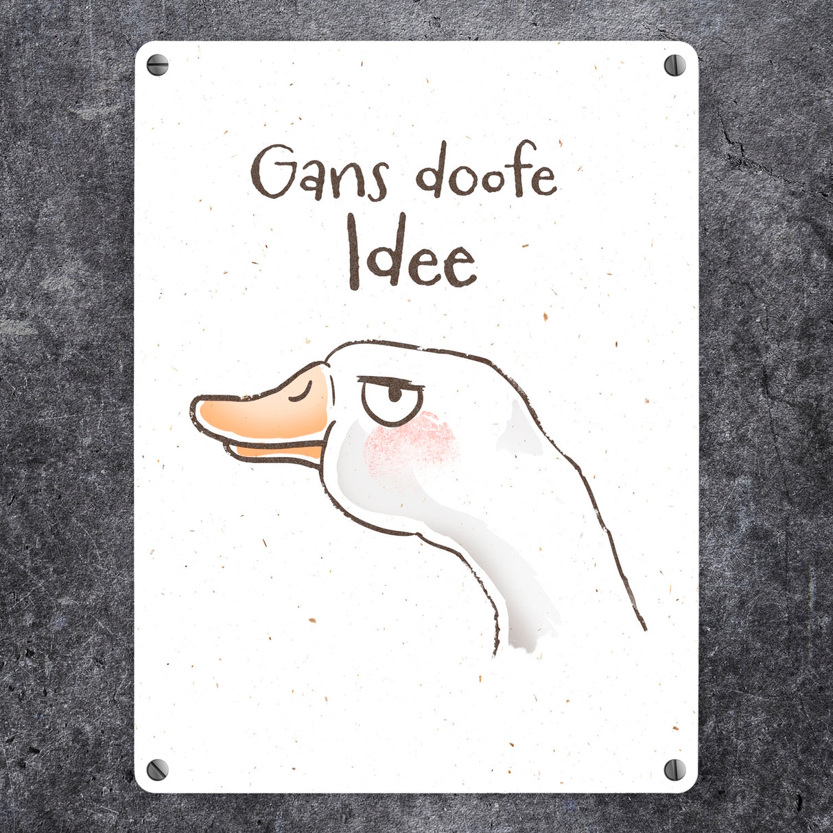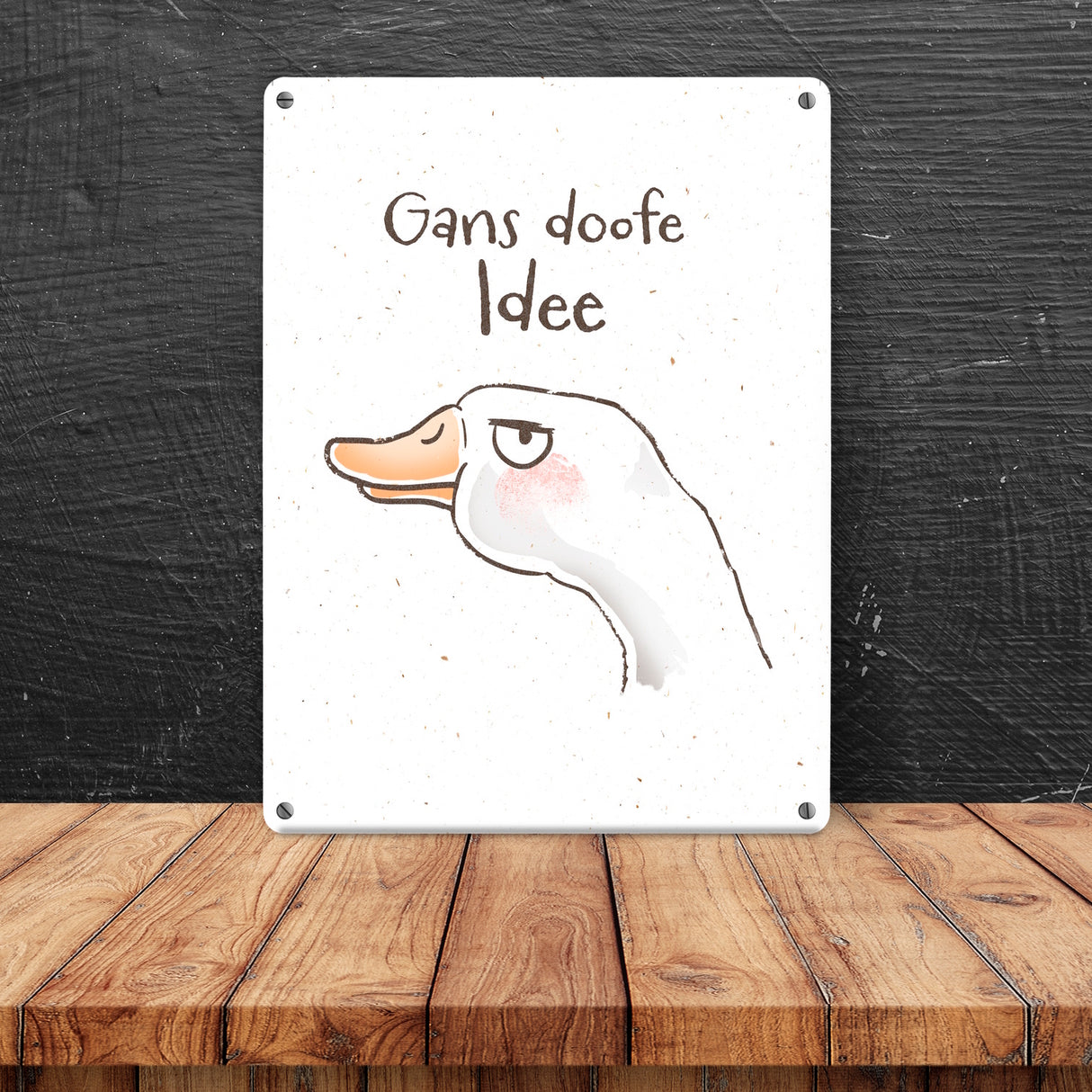 Gilbert die Gans Metallschild in 15x20 cm mit Spruch Gans doofe Idee