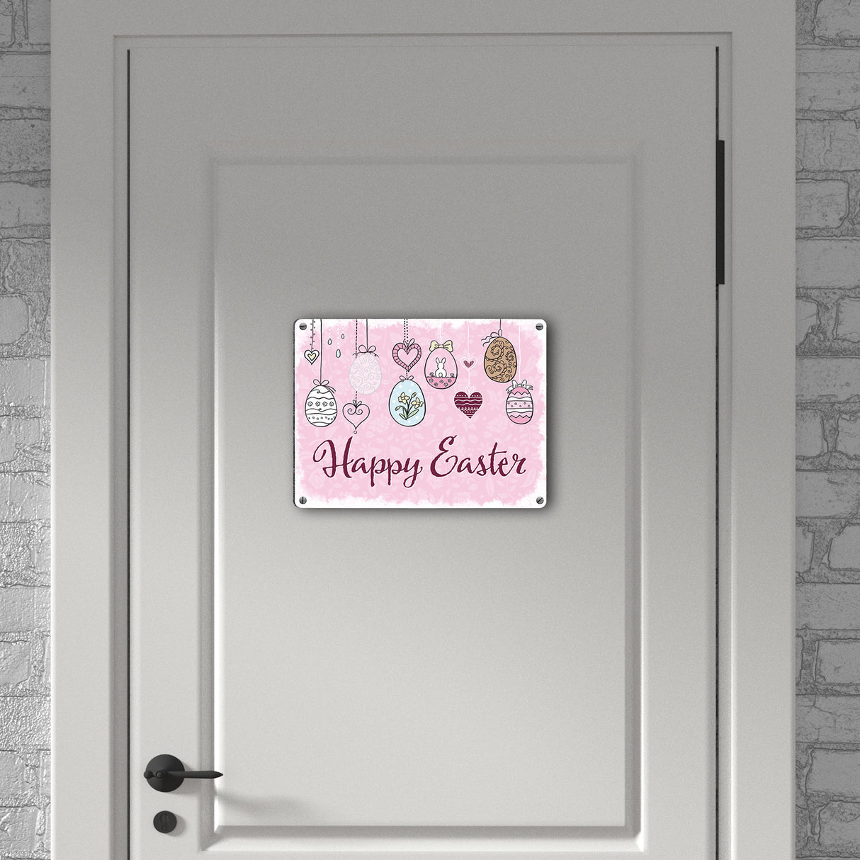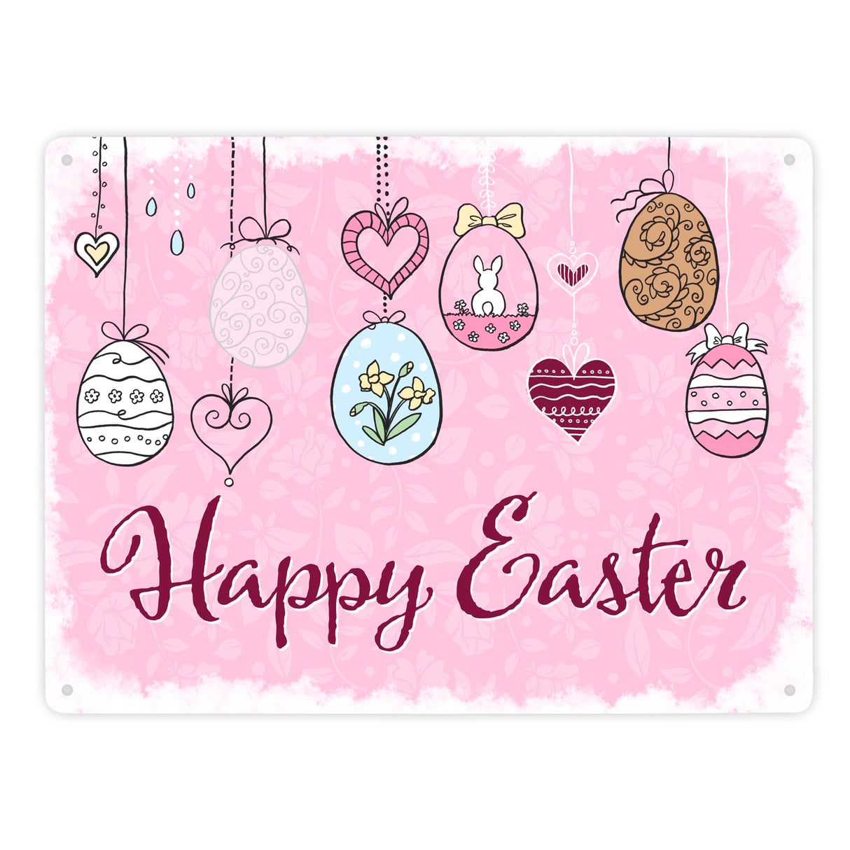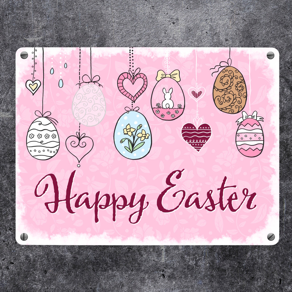 Happy Easter Ostern Metallschild mit Ostereier-Motiv in rosa