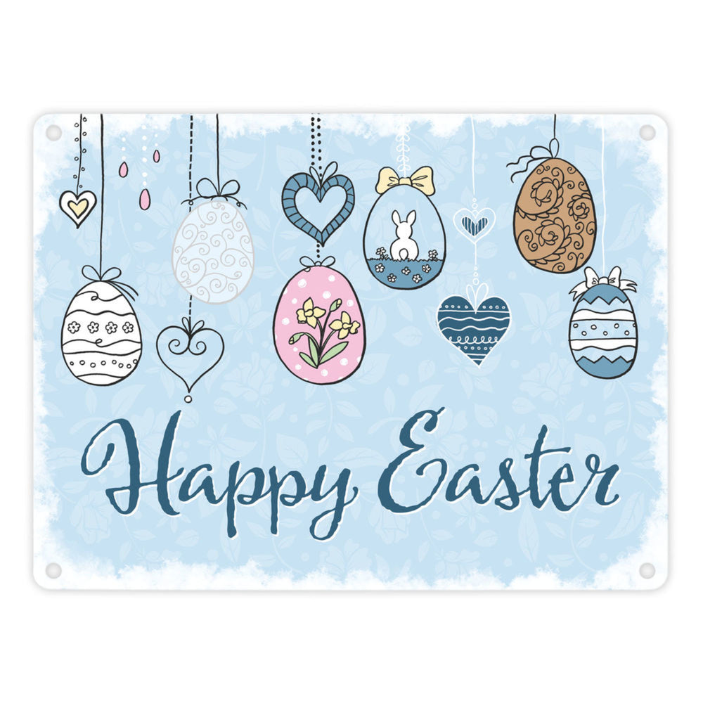 Frohe Ostern Metallschild mit Frühlingsmotiven