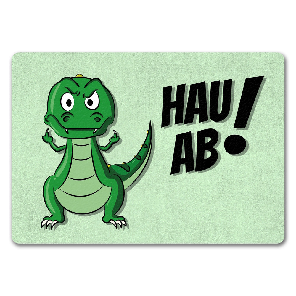 - 1x Hau ab! Fußmatte mit T-Rex Motiv in der gewählten Größe
