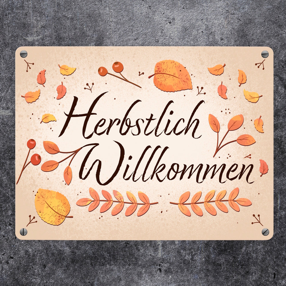 - Der Herbst ist für viele Menschen die schönste Jahreszeit, die Blätter färben sich rot und die Temperaturen kühlen etwas ab. Mit diesem schönen Metallschild kannst du alle herbstlich willkommen heißen.