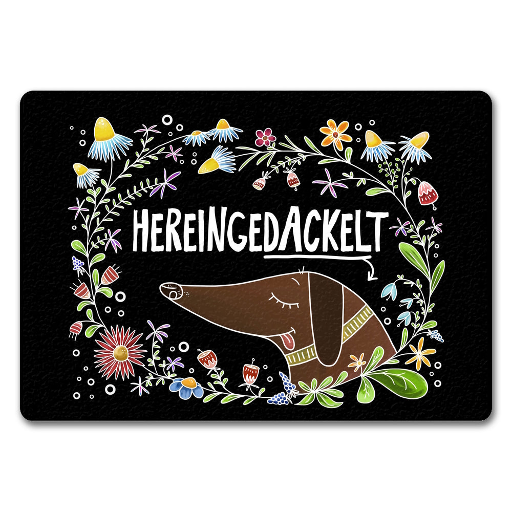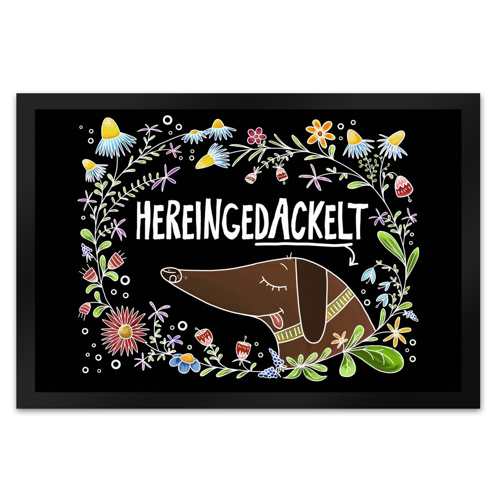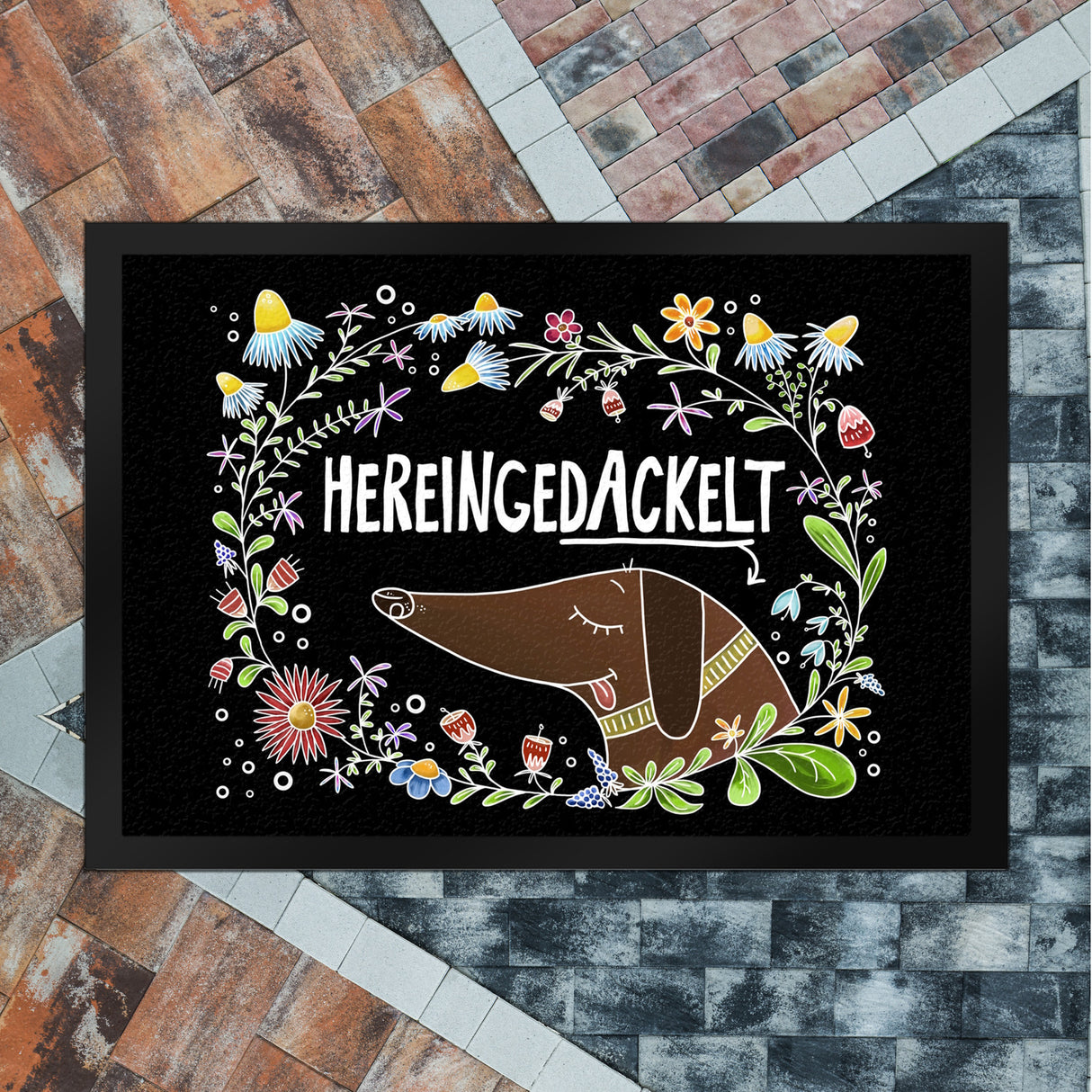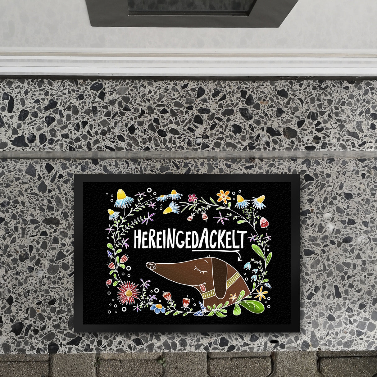 Die Hereingedackelt Fußmatte mit dem süßen Hundemotiv ist ein witziges und praktisches Accessoire für jeden Eingang. Sie ist in drei verschiedenen Größen erhältlich (50x35cm, 60x40cm und 75x50cm) und besteht aus pflegeleichter Kunstfaser. Dank der rutschfesten Gummiunterseite und dem niedrigen Gummirand liegt die Matte sicher am Boden. In liebevoller Handarbeit in Deutschland produziert, bringt die Fußmatte sowohl Sauberkeit als auch eine herzliche Willkommensbotschaft ins Haus. Mit ihrem charmanten Spruch „Hereingedackelt“ wird dein Zuhause schon vor der Tür zu etwas ganz Besonderem. Ein absolutes Must-have für alle Wortspiele-Fans!