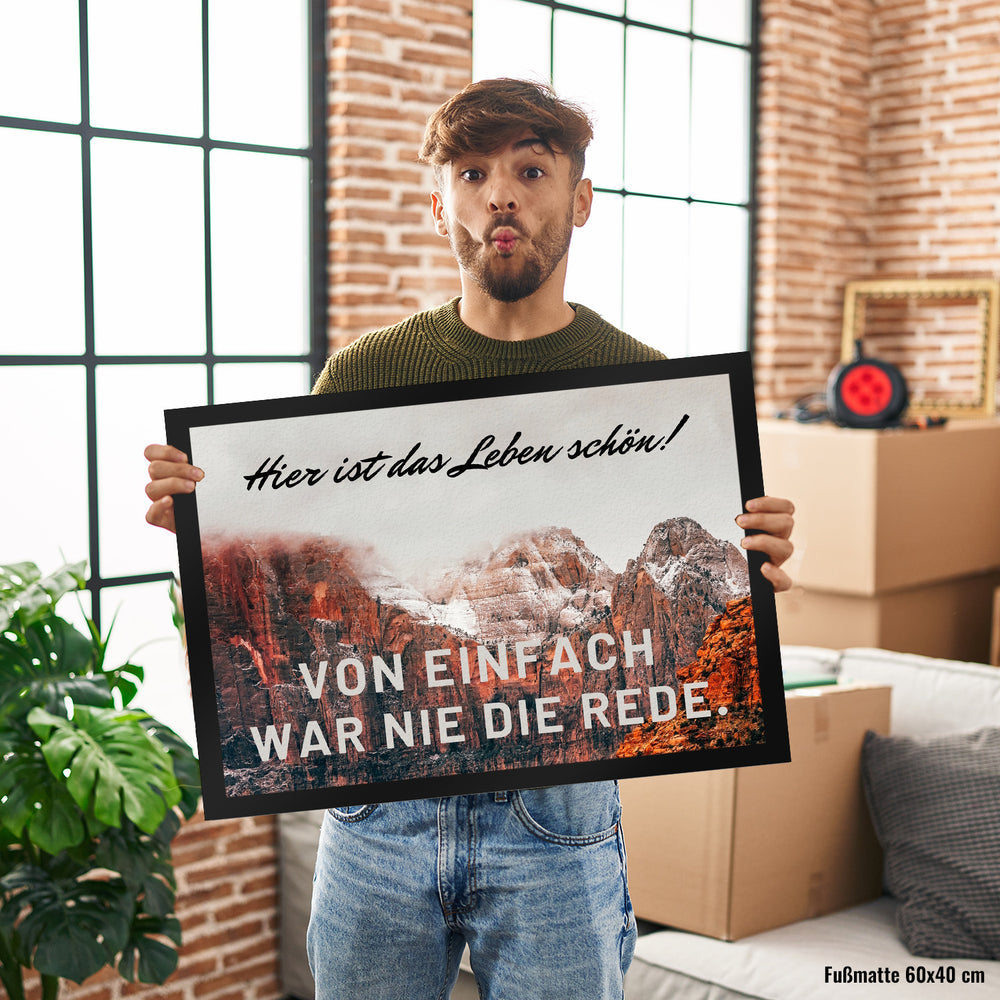 Hier ist das Leben schön Fußmatte in 35x50 cm mit schöner Berglandschaft