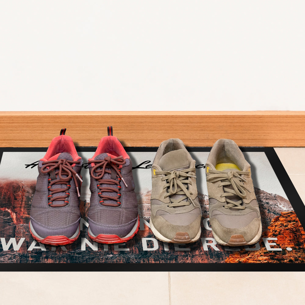 - 1x Hier ist das Leben schön Fußmatte in 35x50 cm mit schöner Berglandschaft in der gewählten Größe