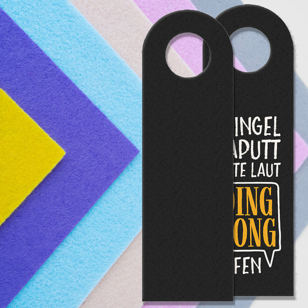 - Einzeln erhältlich oder als 3er- und 10er-Sparset. Aus hochwertigem Filz mit praktischem Loch für die Türklinke. Mit Sorgfalt in Handarbeit hergestellt in unserer Türhänger-Manufaktur in Deutschland.