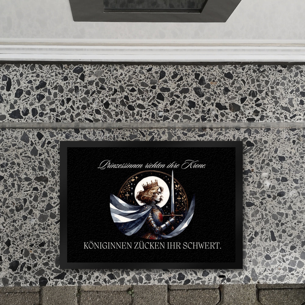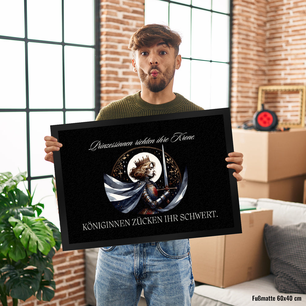 Königin mit Schwert Fußmatte in 35x50 cm mit Spruch Königinnen zücken ihr Schwert