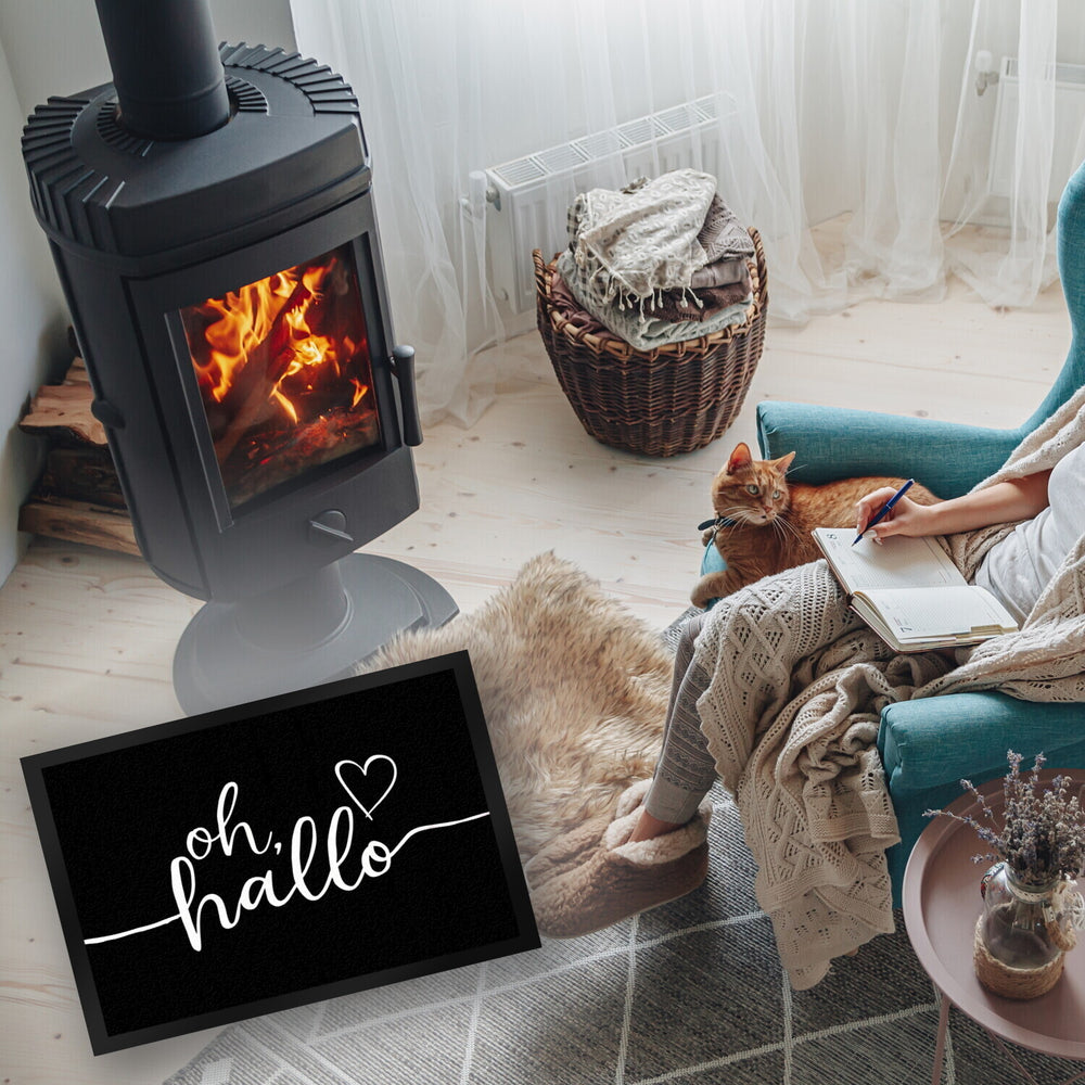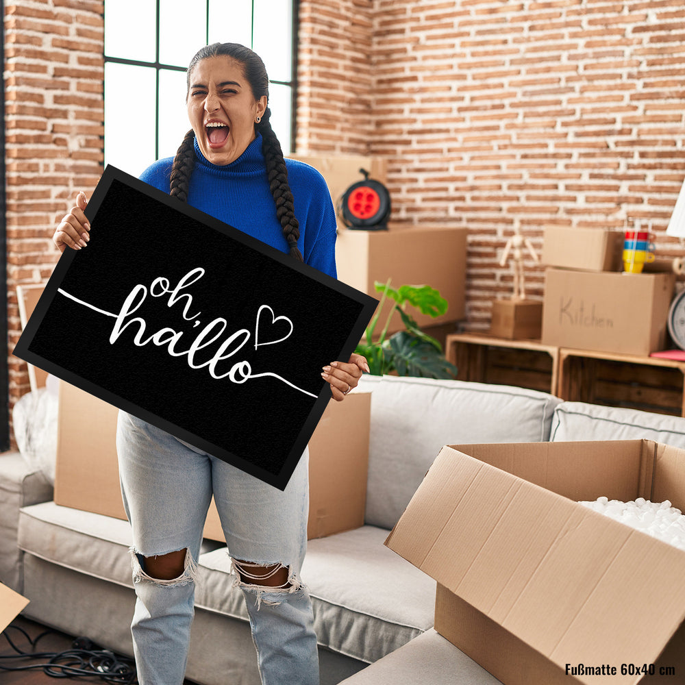Oh Hallo Fußmatte in 35x50 cm mit Herz in elegantem Design