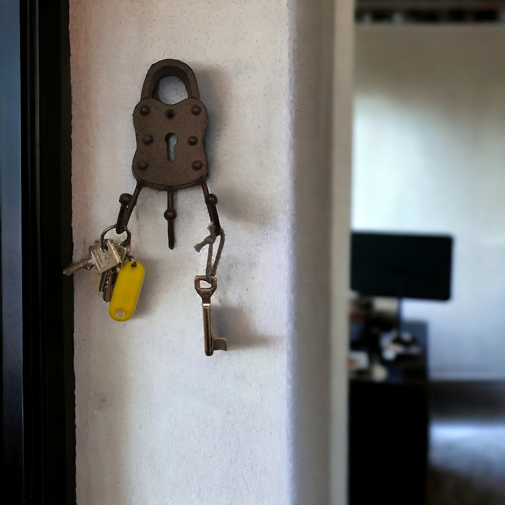 Schlüsselhalter Wand Retro Schloss Schlüsselbrett aus Gusseisen in Braun-Antik