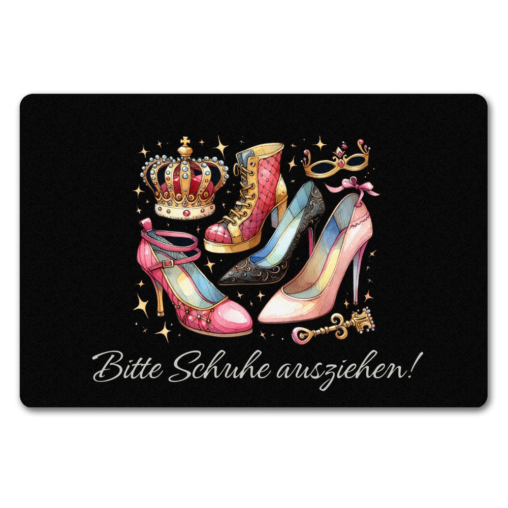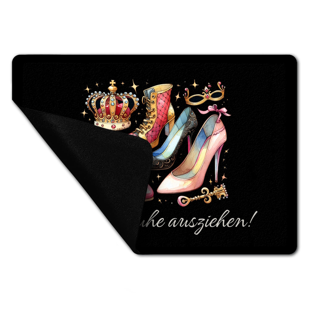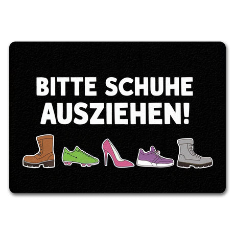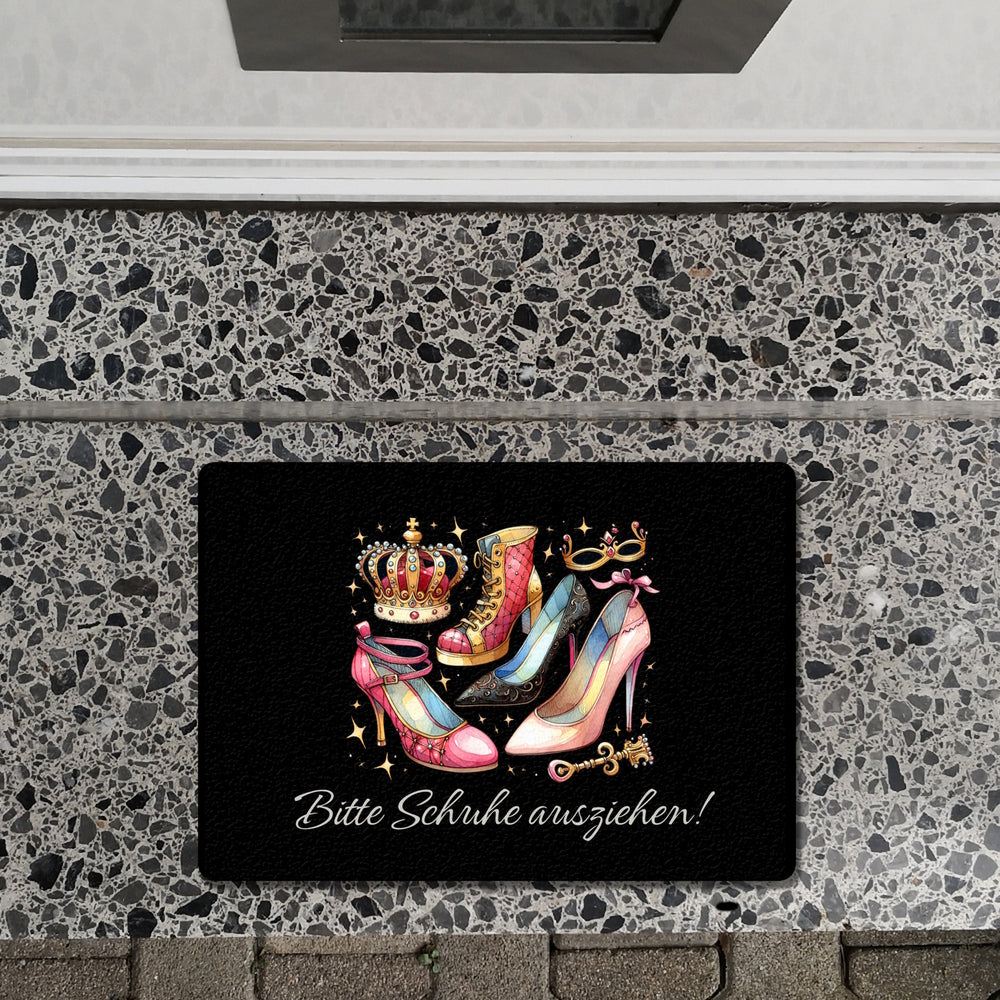 - Stolper' nicht über langweilige Fußmatten! Mit unserer "Bitte Schuhe ausziehen" Eingangsmatte rollst du den verrückten Highheels-Teppich aus. Krön' deinen Eingangsbereich mit einer Farbexplosion für die Lachmuskeln!