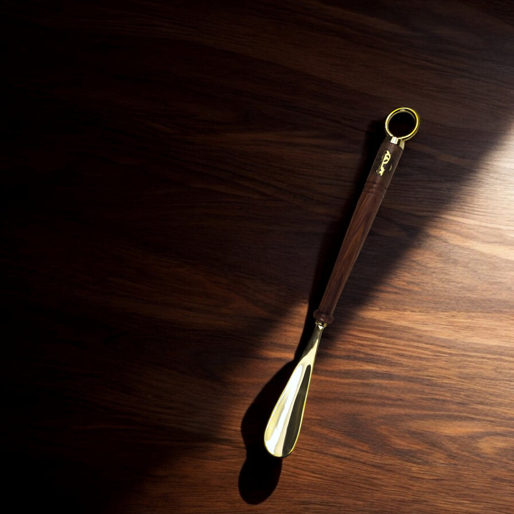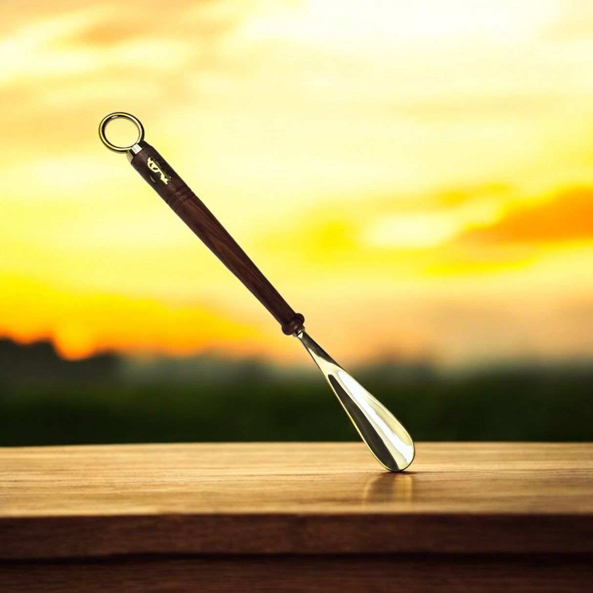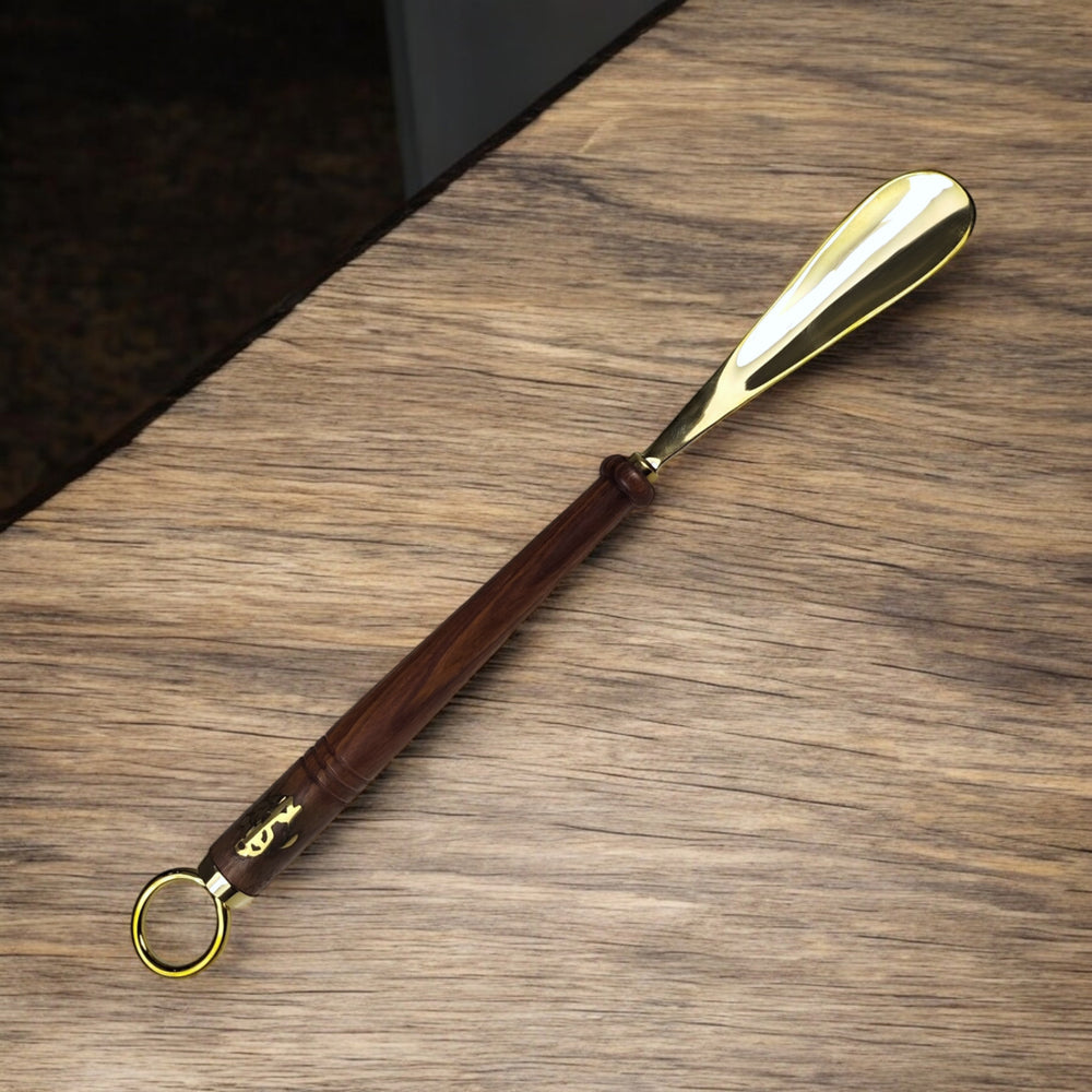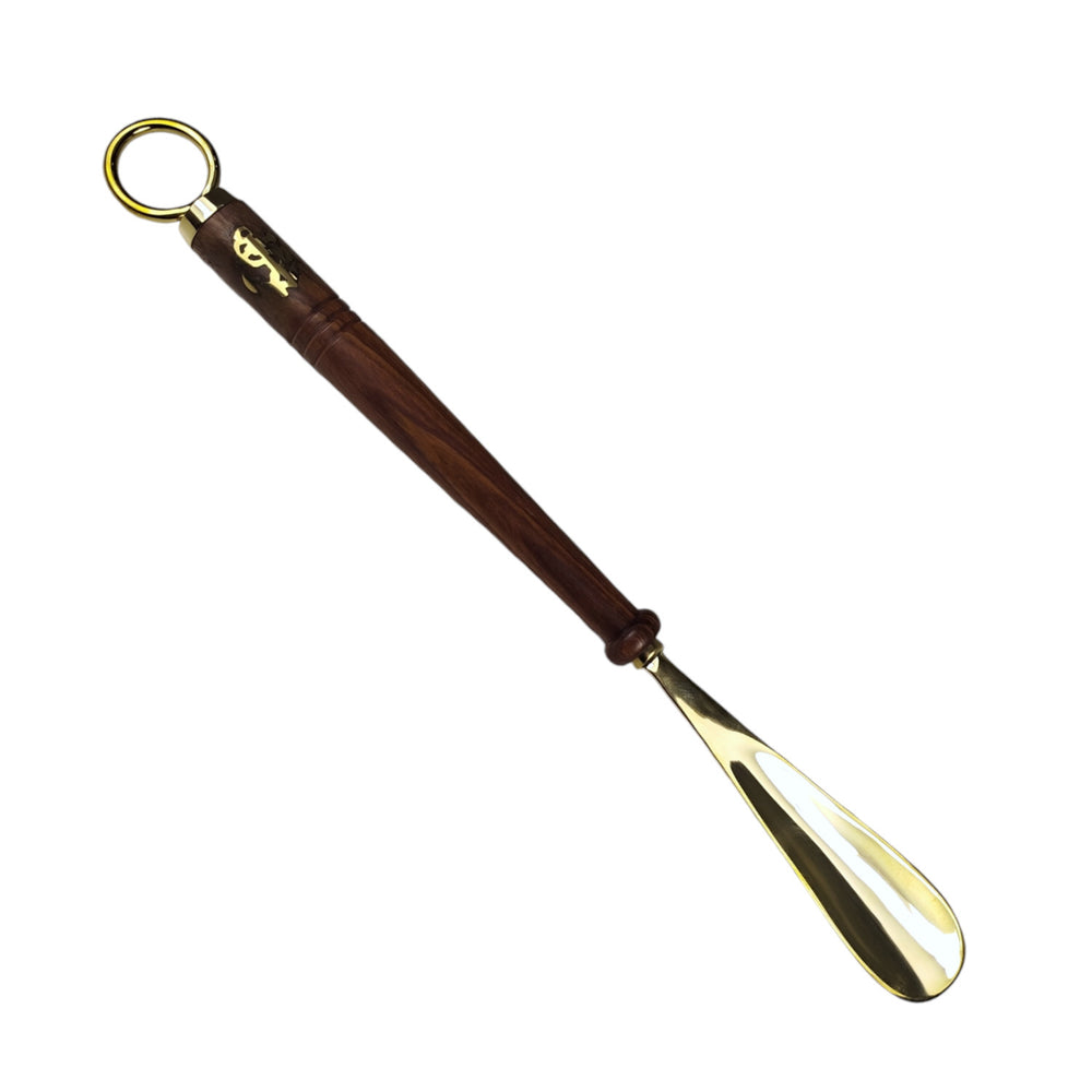 - Der Maritim Schuhlöffel vereint classic Eleganz und Funktionalität. Mit einem 43 cm langen, goldglänzenden Metallkörper und einem edlen Holzgriff samt Ankersymbol ist er ein stylisches Accessoire. Der praktische Metallring ermöglicht einfaches Aufhängen, sodass er immer griffbereit ist. Ein Schuhzubehör, das Ihrem Zuhause maritimes Flair verleiht!