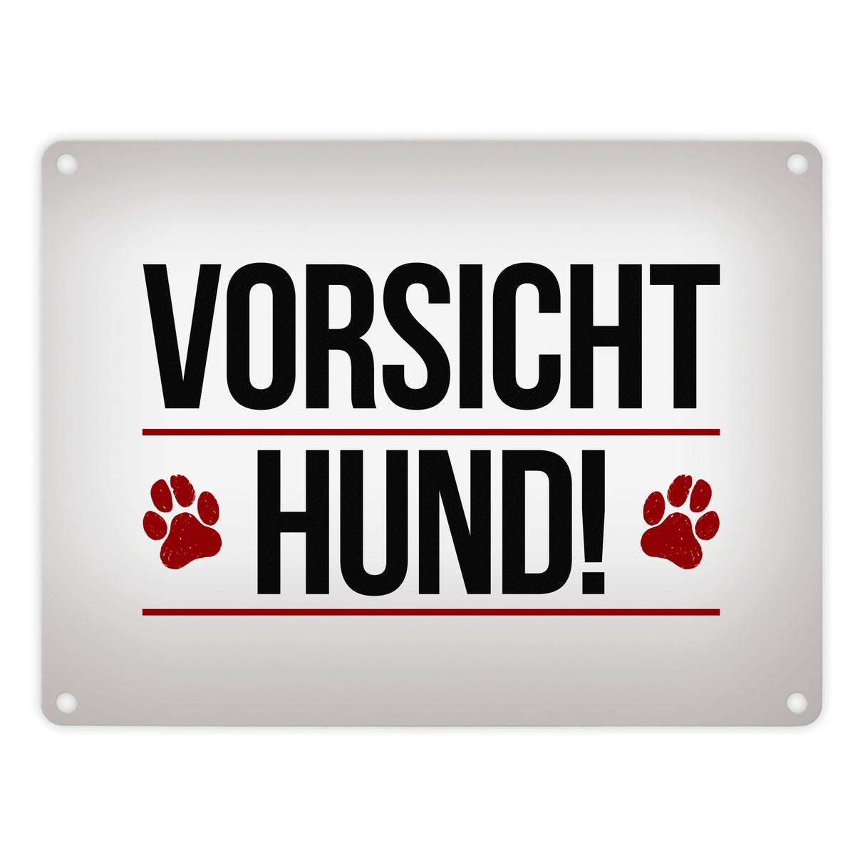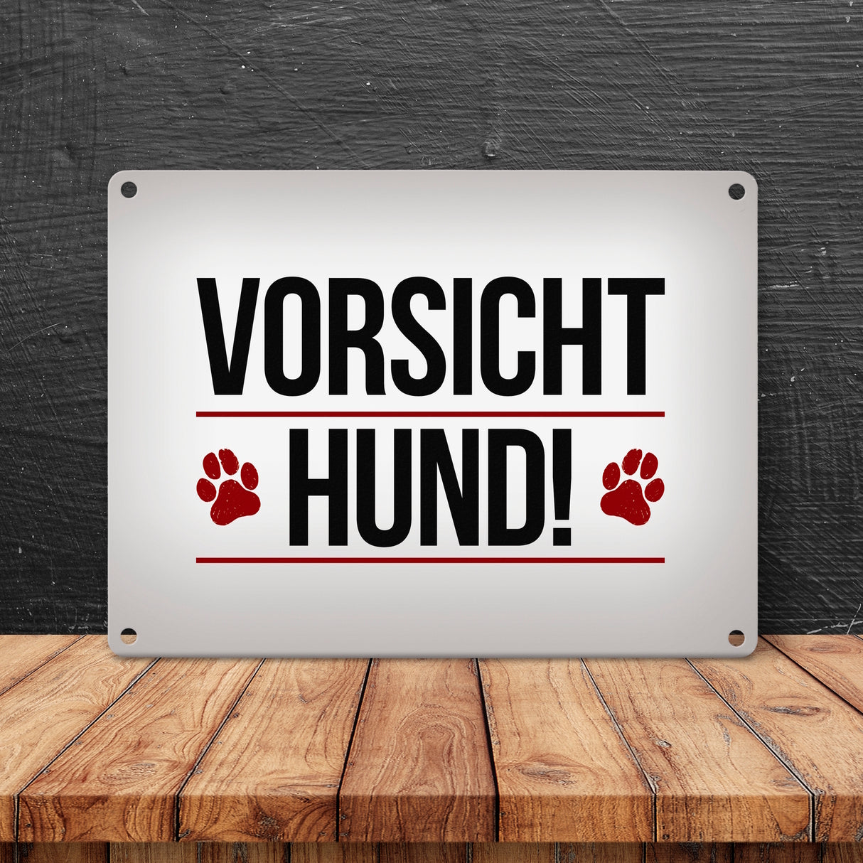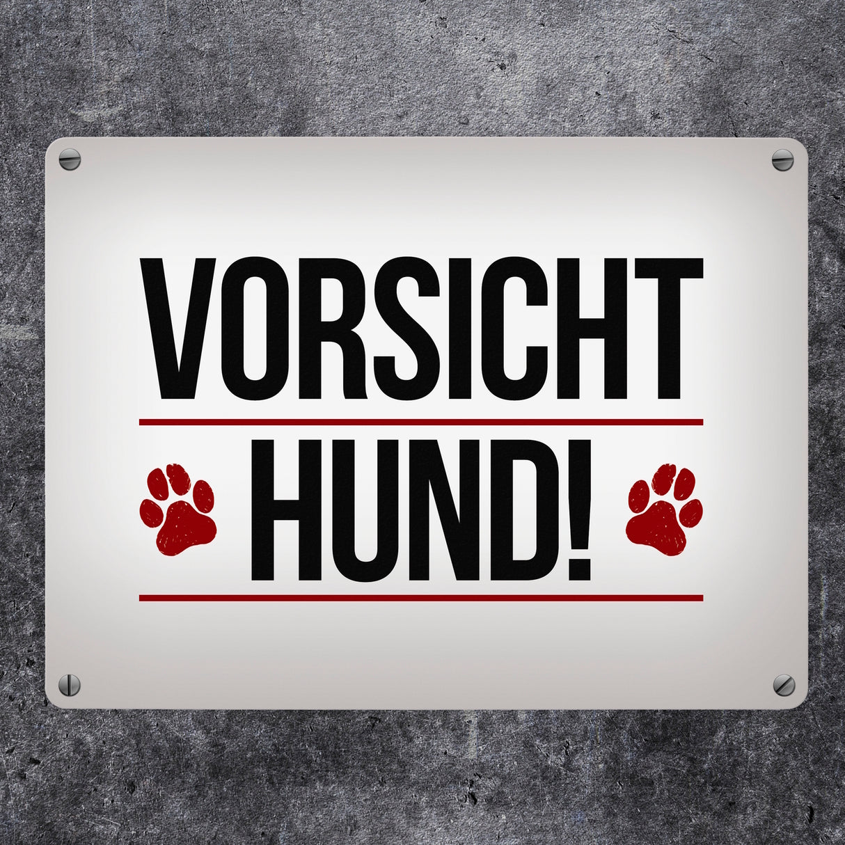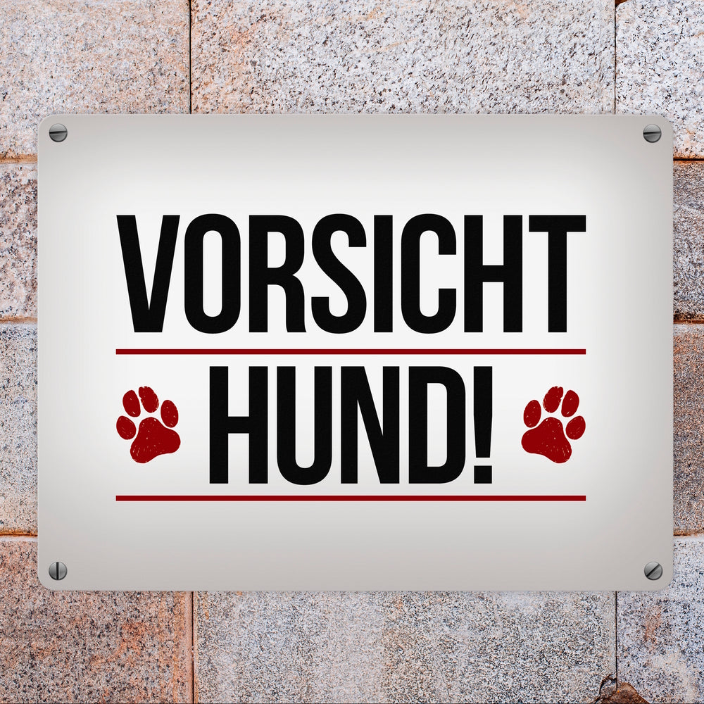 Vorsicht Hund! Metallschild mit Pfoten Motiv - Warnung Hinweis Achtung Warnschild