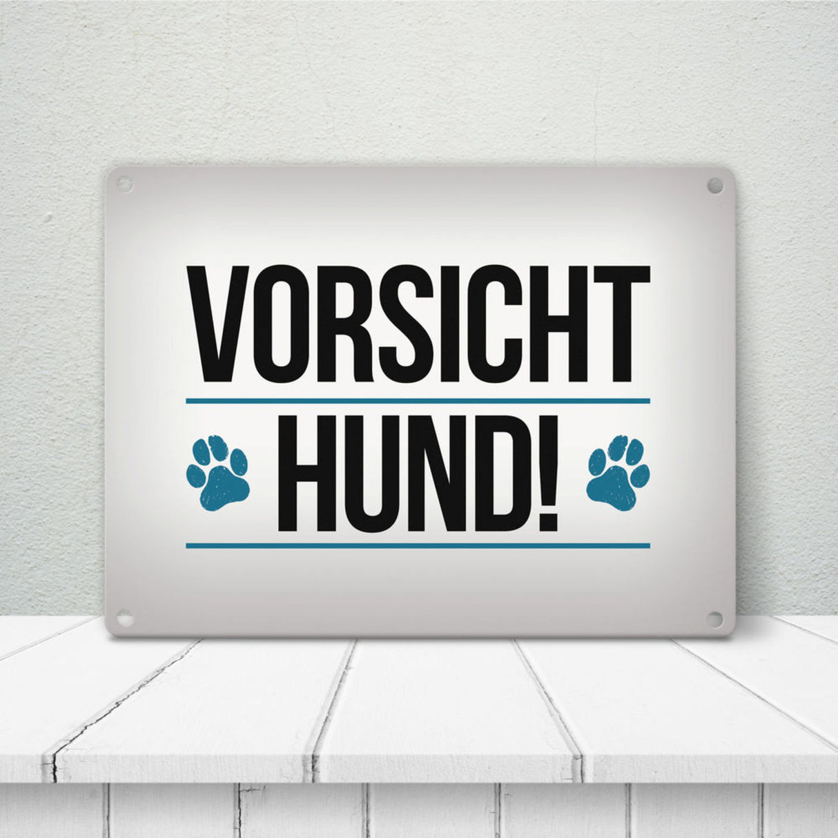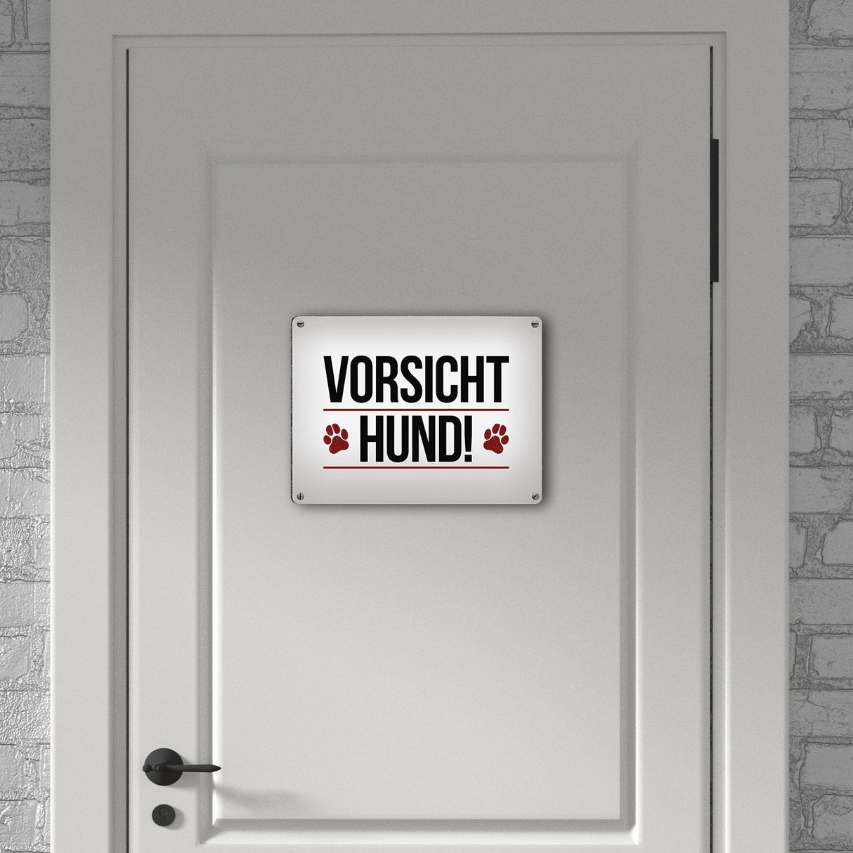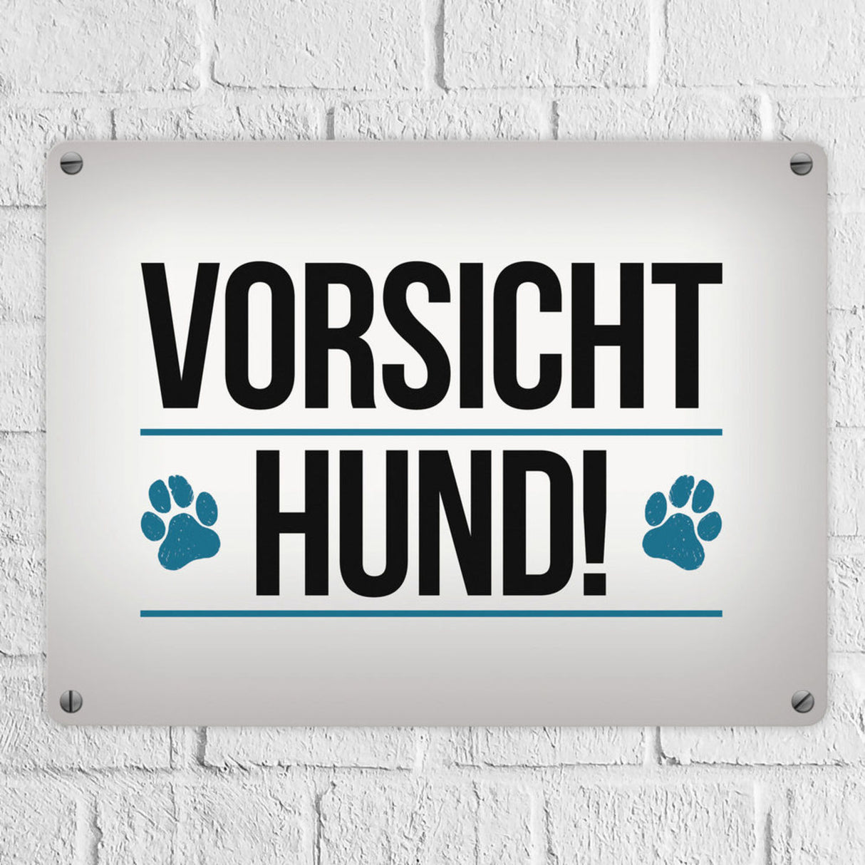 Vorsicht Hund! Metallschild mit Pfoten Motiv - Warnung Hinweis Achtung Warnschild