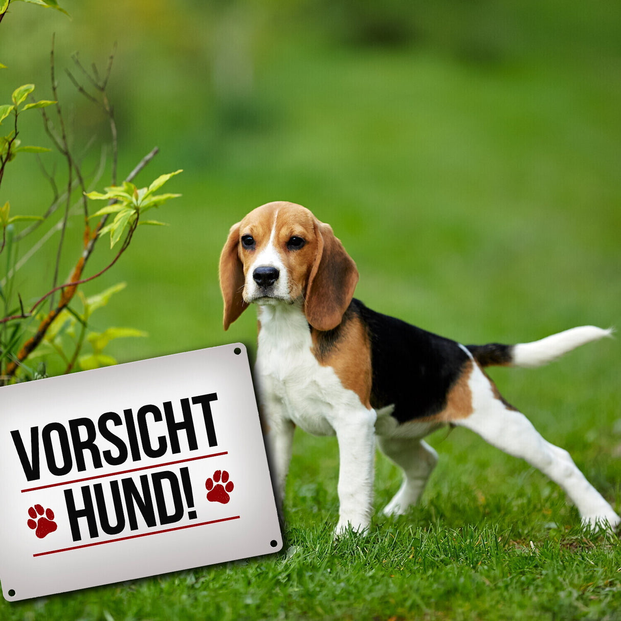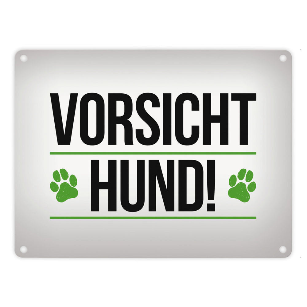 • 1x Vorsicht Hund! Metallschild mit Pfoten Motiv - Warnung Hinweis Achtung Warnschild in der gewählten Größe