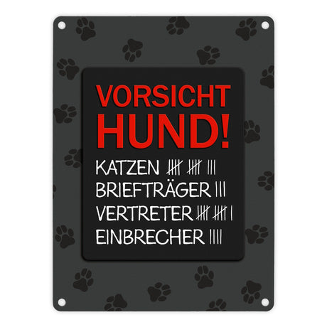 Vorsicht Hund! Metallschild mit Strichliste Motiv