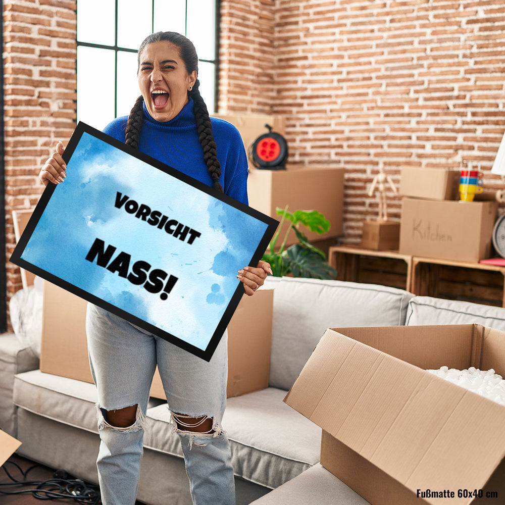 • 1x Vorsicht Nass! Fussmatte mit Tropfen oder Wasserpfütze in der gewählten Größe