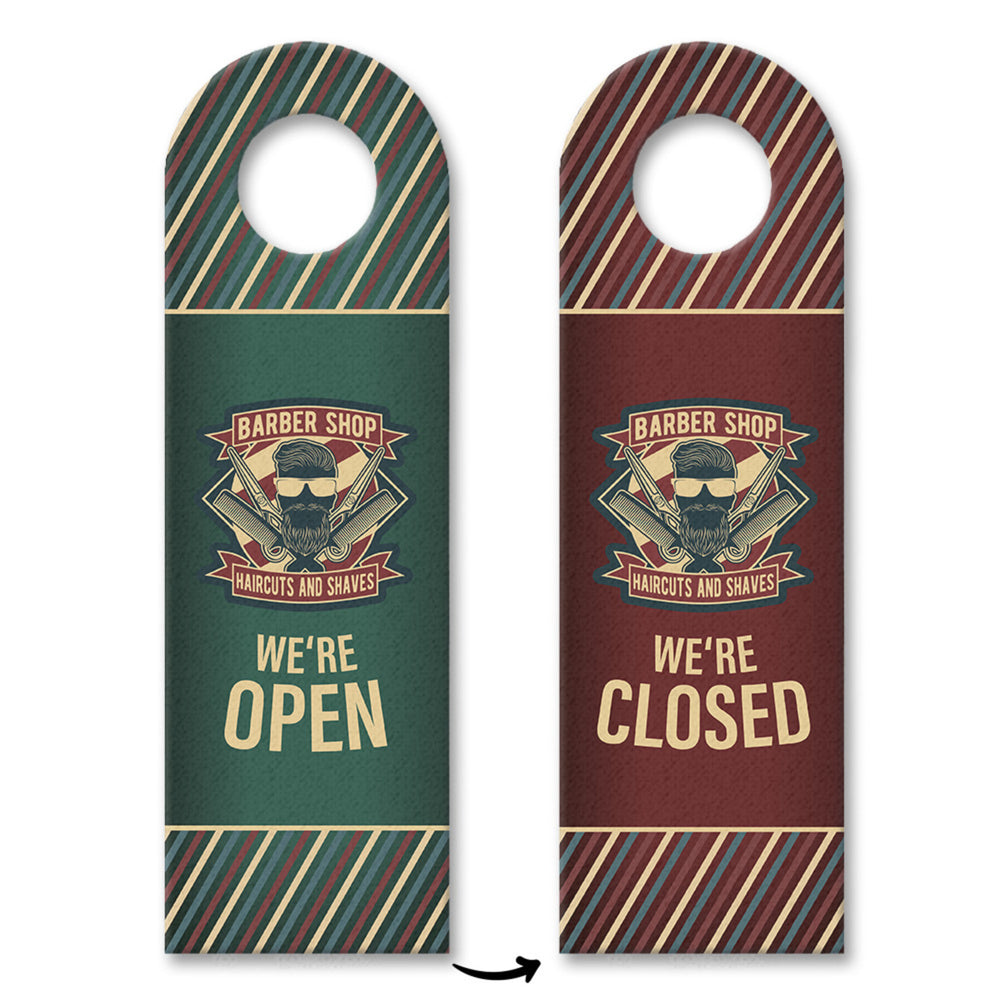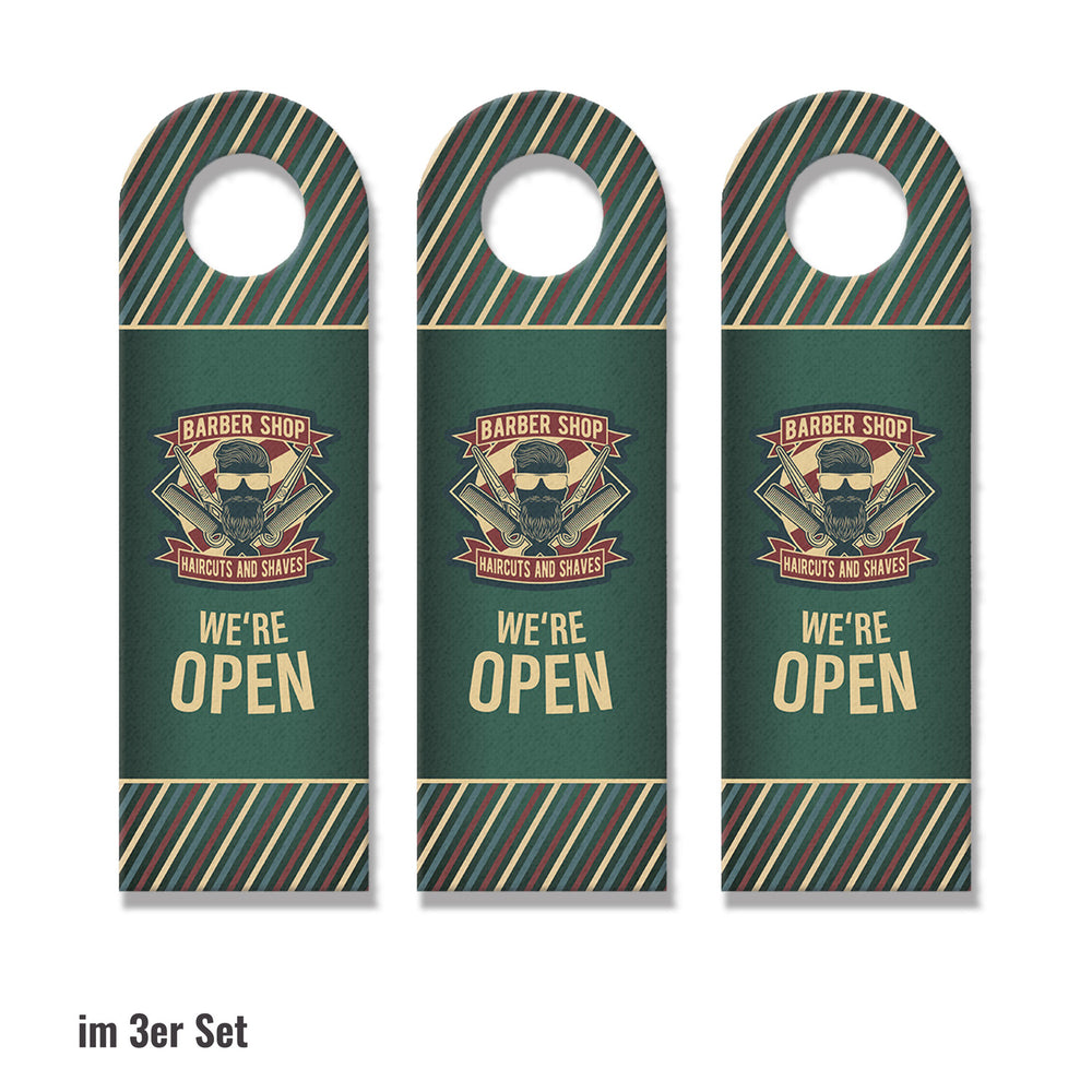 - 1x We're open oder closed Barber-Shop Türhänger in der gewählten Setgröße