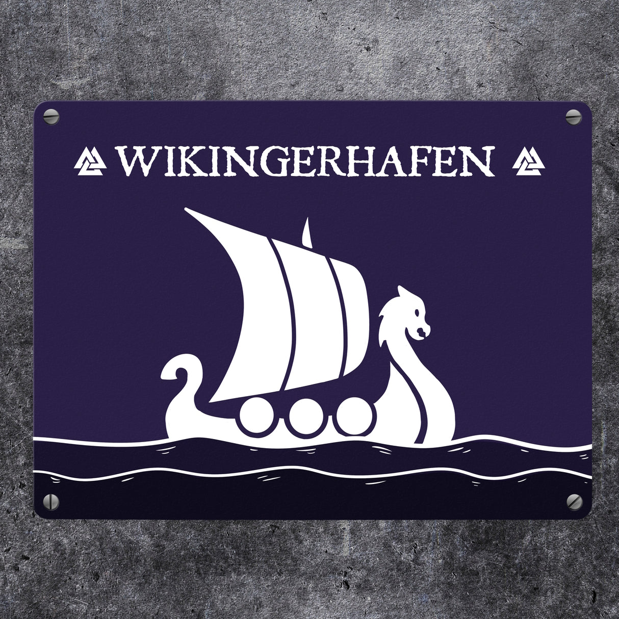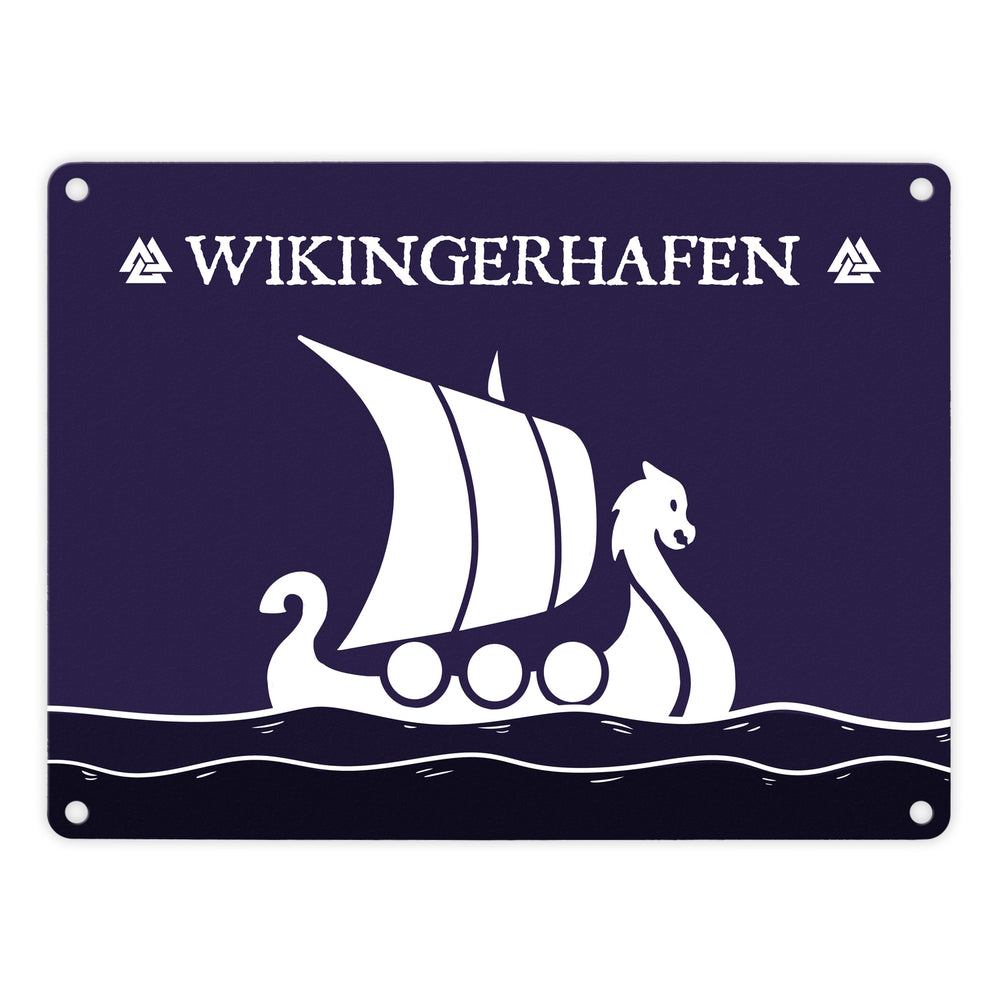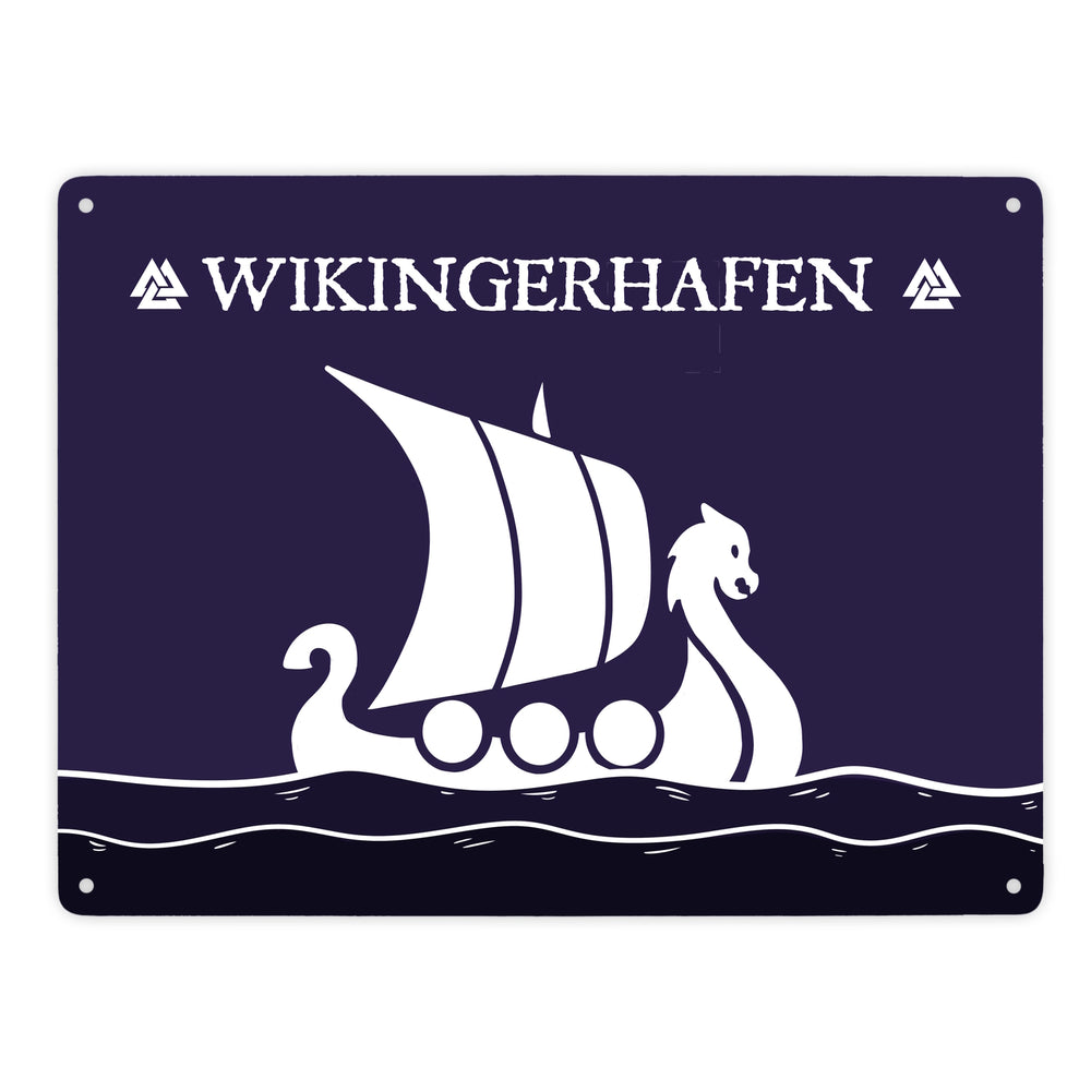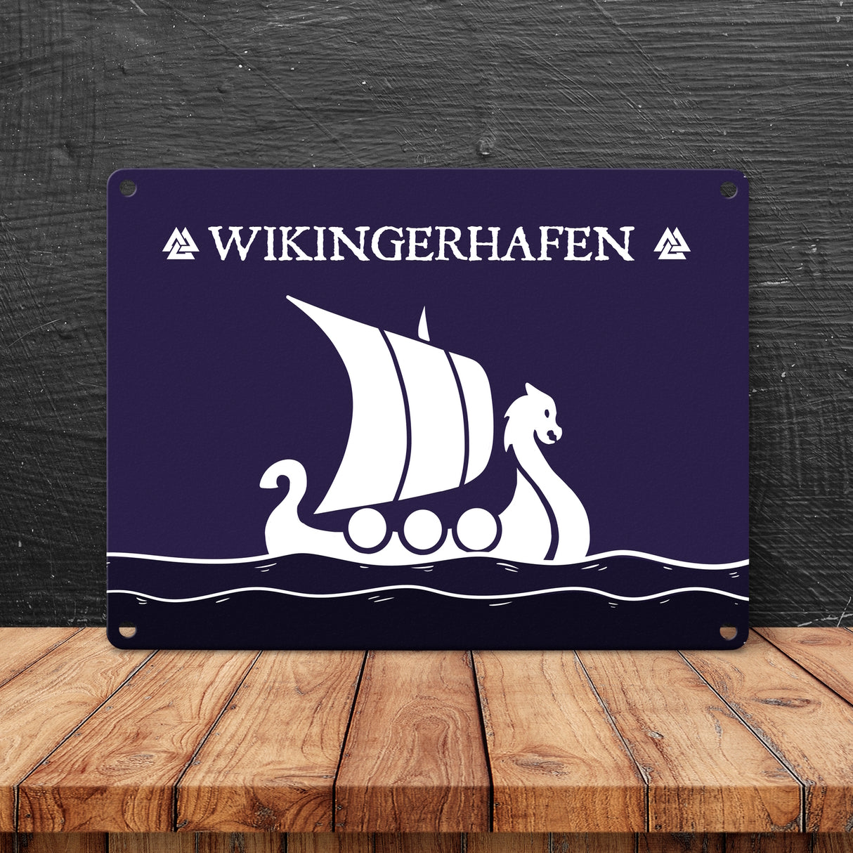 Wikingerhafen Metallschild mit Drachenboot Motiv