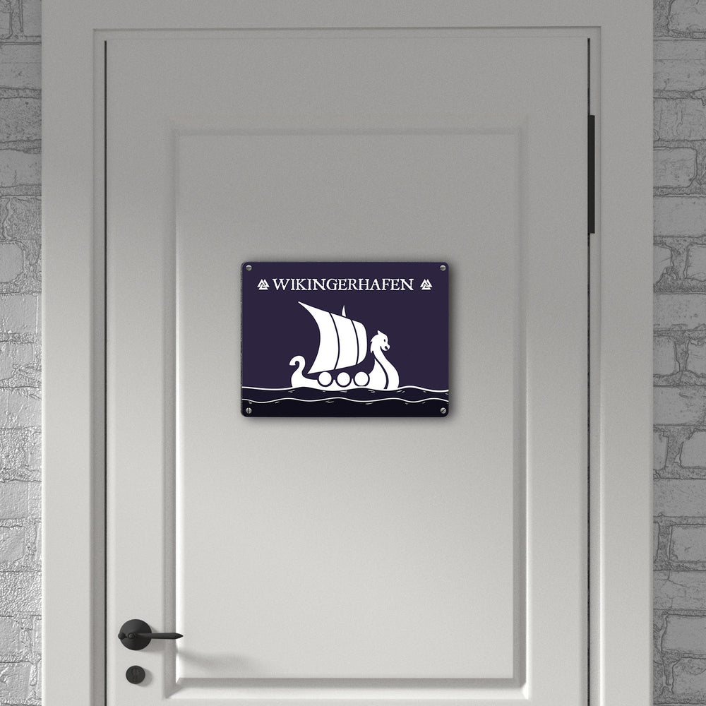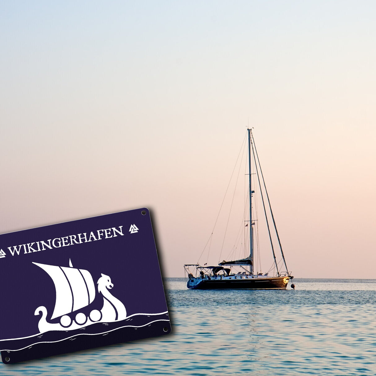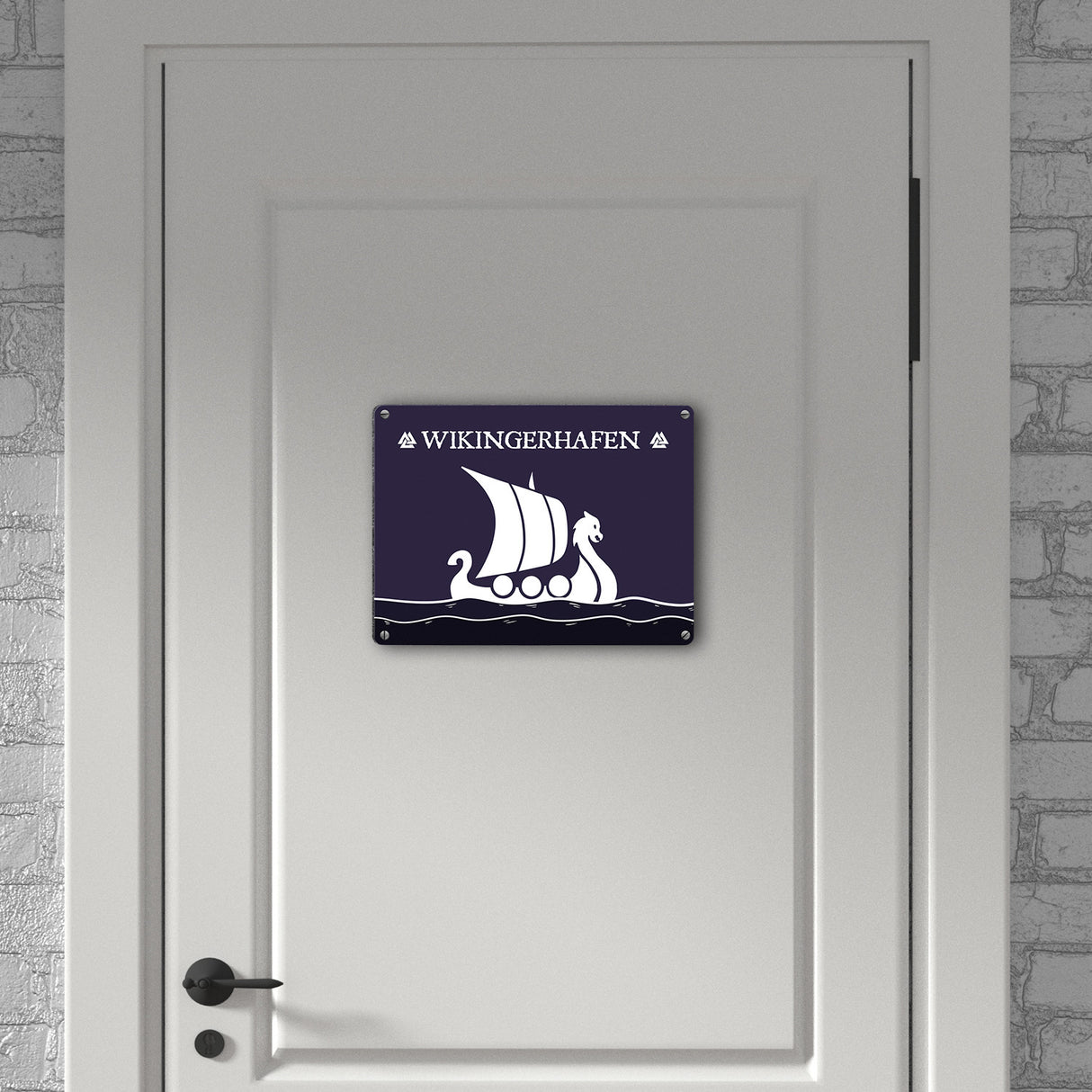 • 1x Wikingerhafen Metallschild mit Drachenboot Motiv in der gewählten Größe