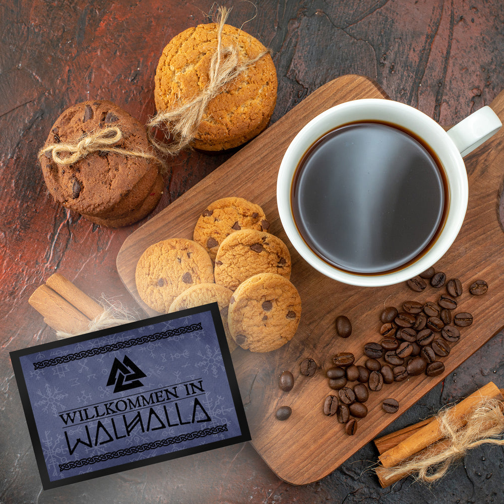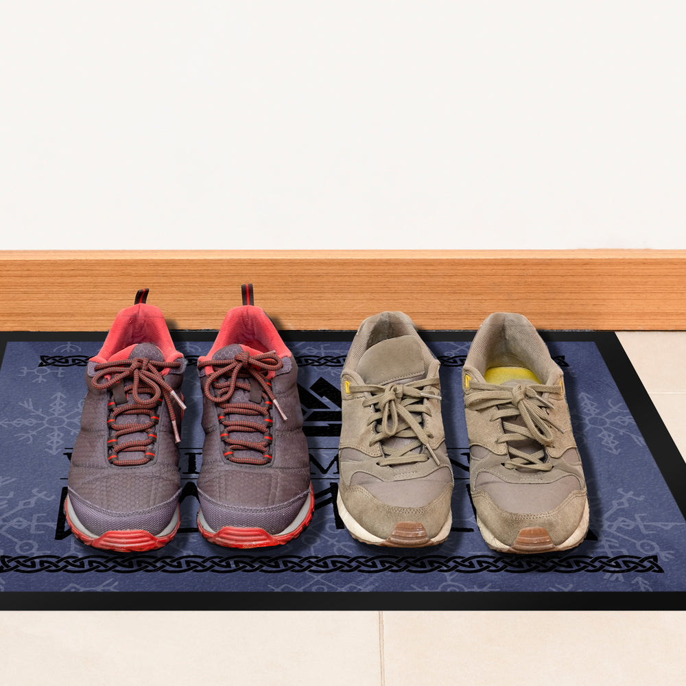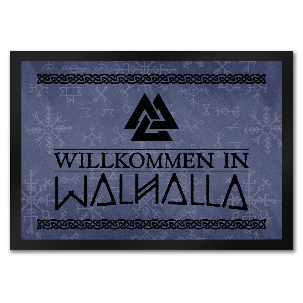 - 1x Willkommen in Walhalla Wikinger Fußmatte mit Runen und Knoten Motiven in der gewählten Größe