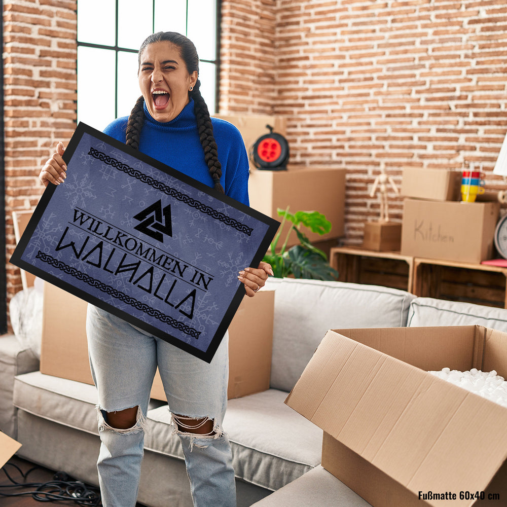 Willkommen in Walhalla Fußmatte mit Runen Motiv