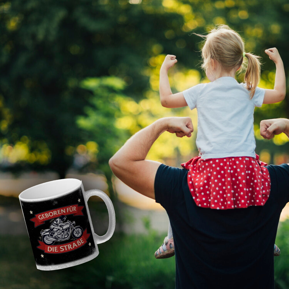 • 1x Geboren für die Straße Kaffeebecher mit coolem Biker Motiv in der gewählten Ausführung