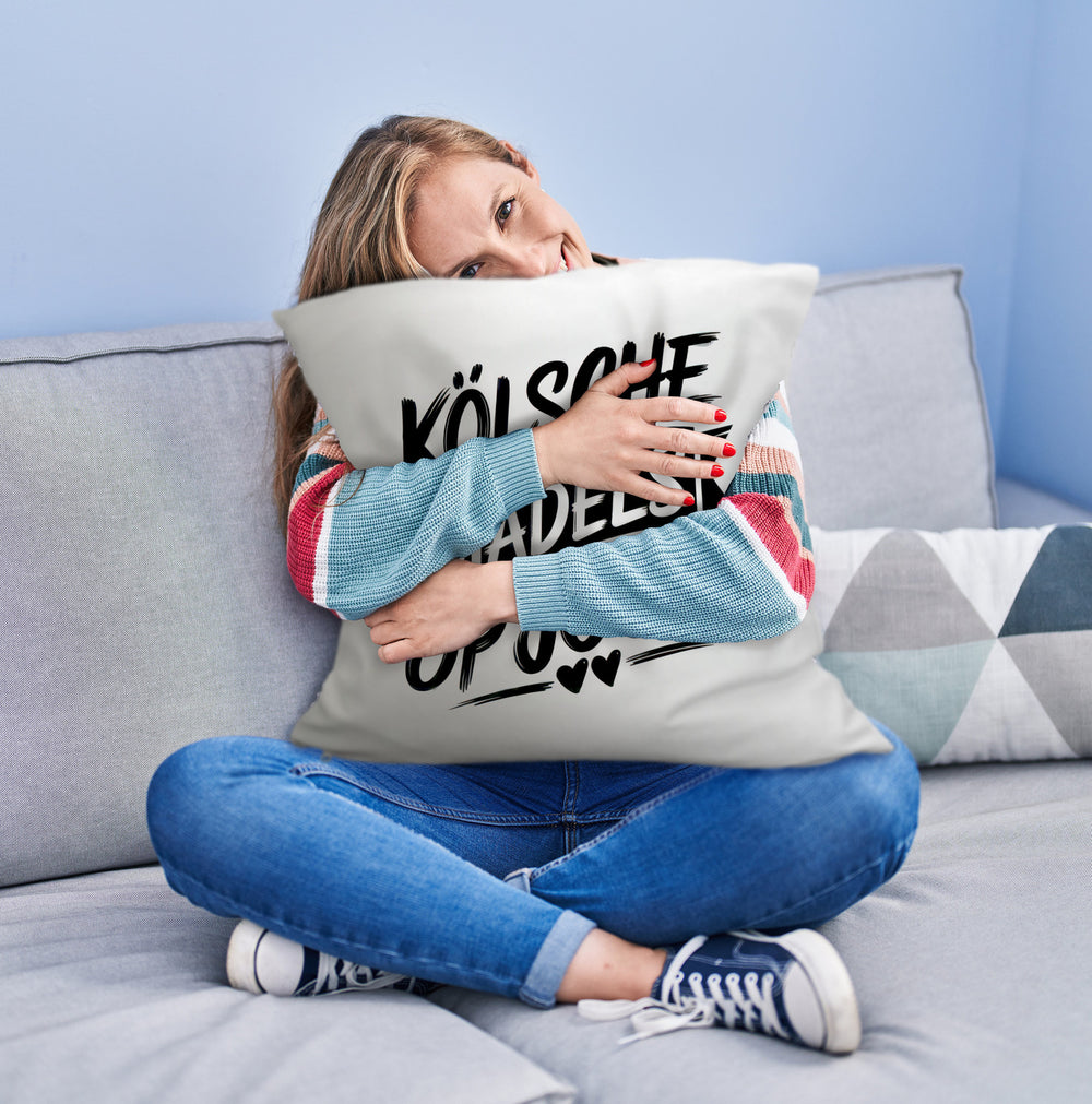 • Dieses humorvolle Sofakissen ist ein echter Hingucker! Mit einem lokal inspirierten Spruch "KÖLSCHE MÄDELS OP JÖCK" in einem stylischen Schwarz-Weiß-Design verziert. Der kräftige Pinselstrichstil und elegante Kursive heben es hervor, ergänzt durch süße Herzsymbole auf weißem Hintergrund. Perfekt für alle Köln-Liebhaber!