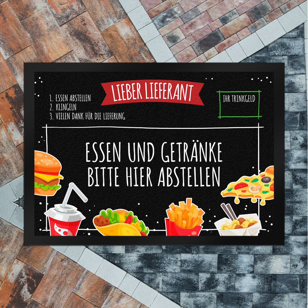 Lieber Lieferant Fußmatte mit Fast Food Motiv und Trinkgeld-Feld für den Pizzaboten
