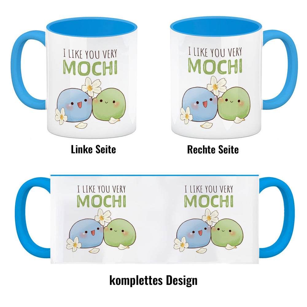 • 1x Mochi Freunde Kaffeebecher mit Spruch I like you very Mochi in der gewählten Ausführung