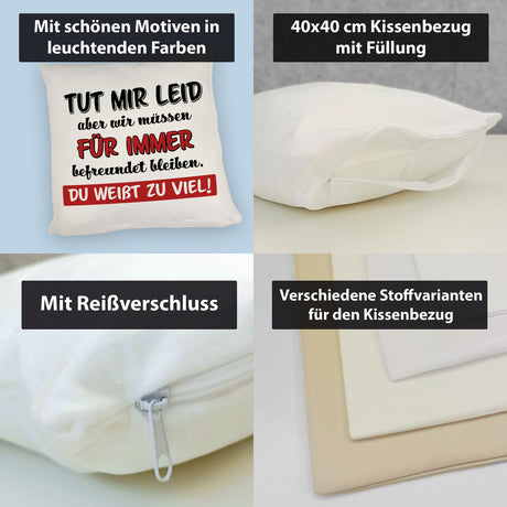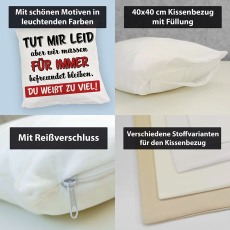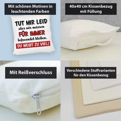 €9,95Grundpreis /Nicht verfügbarAuf LagerFreundschaft Kissen mit Spruch Tut mir Leid wir müssen befreundet bleiben