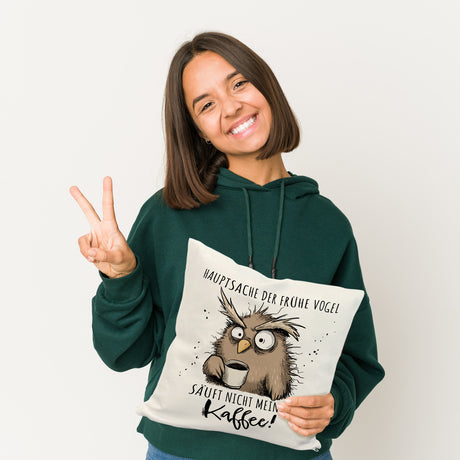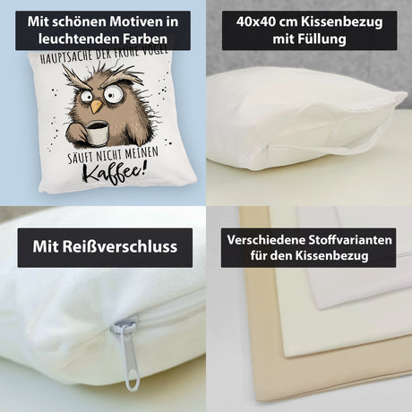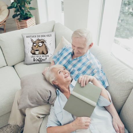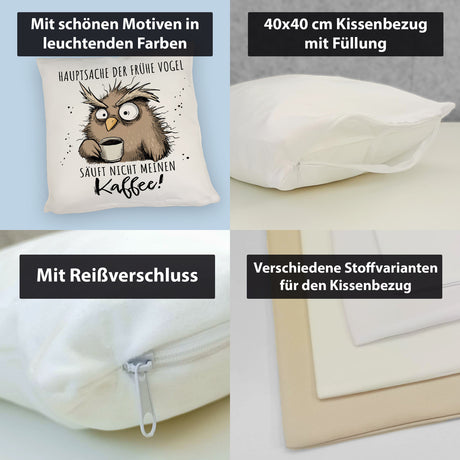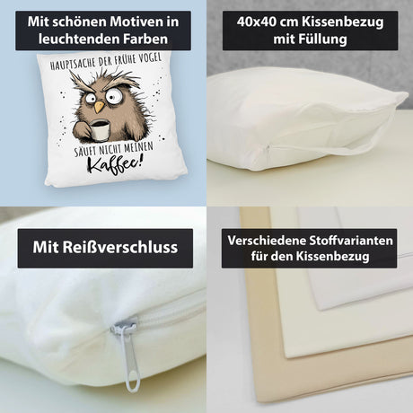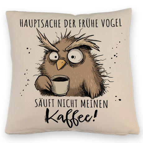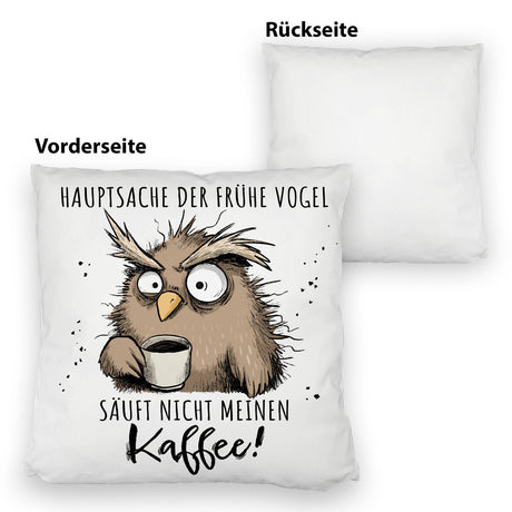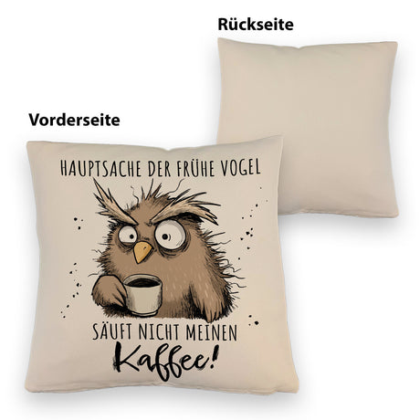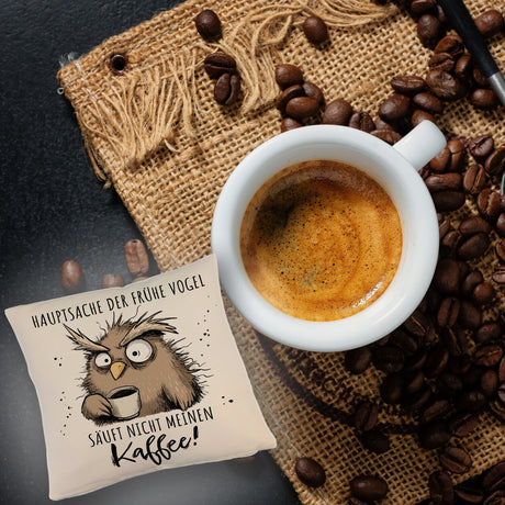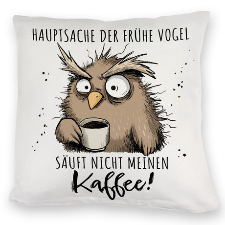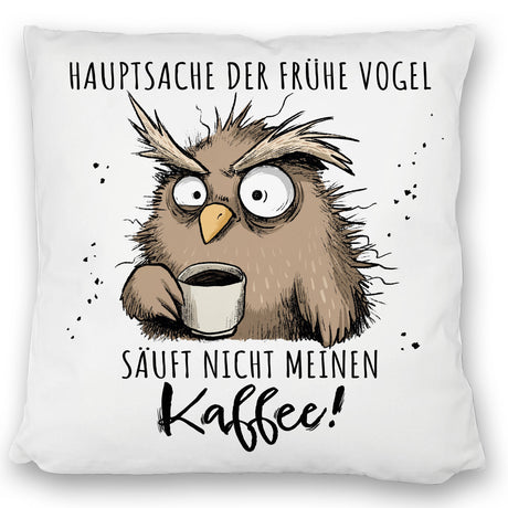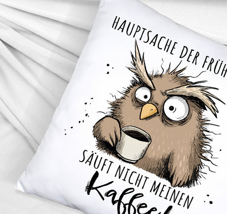 €23,95Grundpreis /Nicht verfügbar Eule Kissen mit Spruch Früher Vogel soll nicht Kaffee saufen